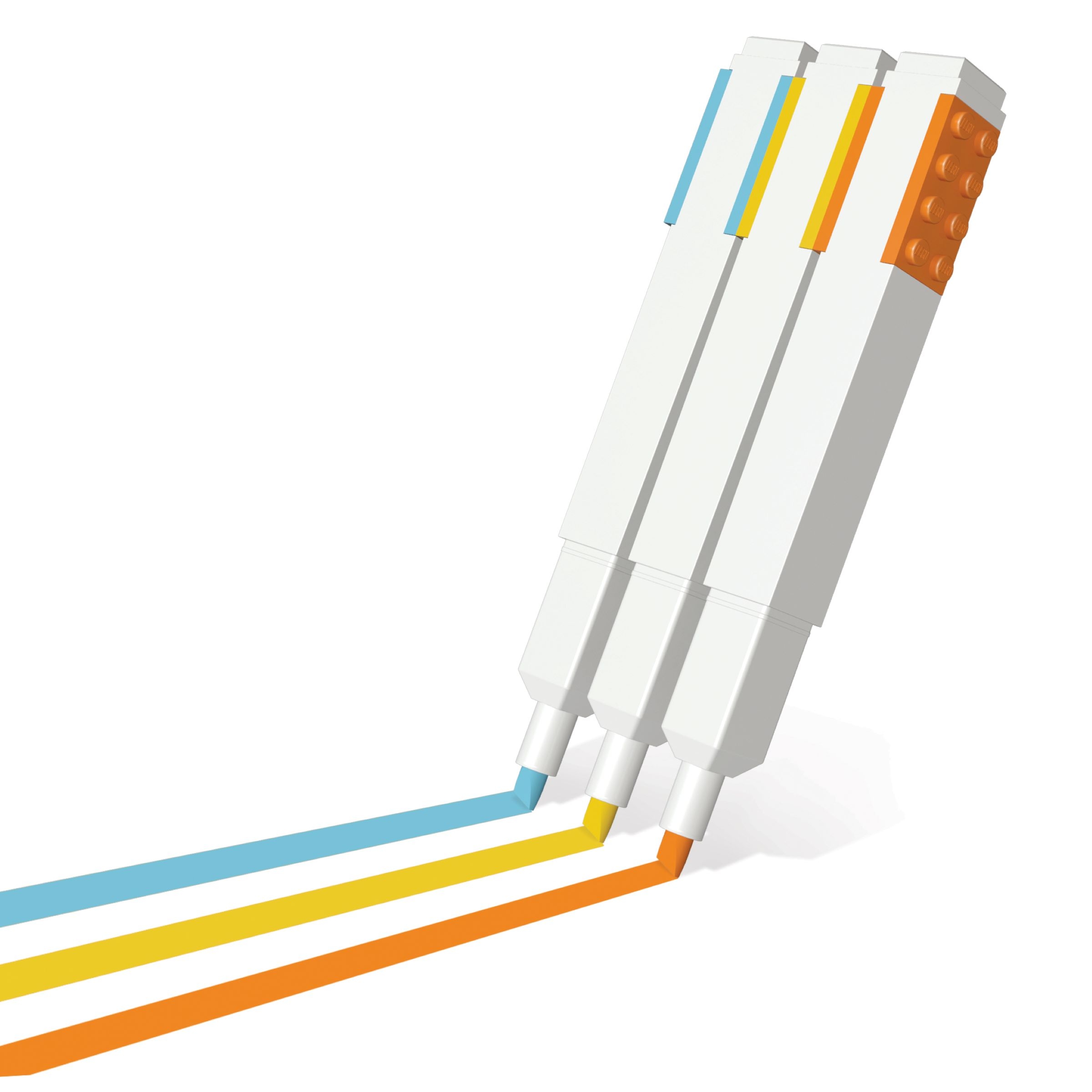 LEGO® fans can make their mark with these highlighter pens in 3 fantastically fluorescent colors – yellow, orange and blue. The flat sides mean they won’t roll off a desk and the chisel tip makes them great for broad highlighting and fine underlining. Each pen includes a 2×4 LEGO plate at the top where kids can attach a LEGO minifigure or other LEGO creation. A great way to brighten any LEGO fan’s day.