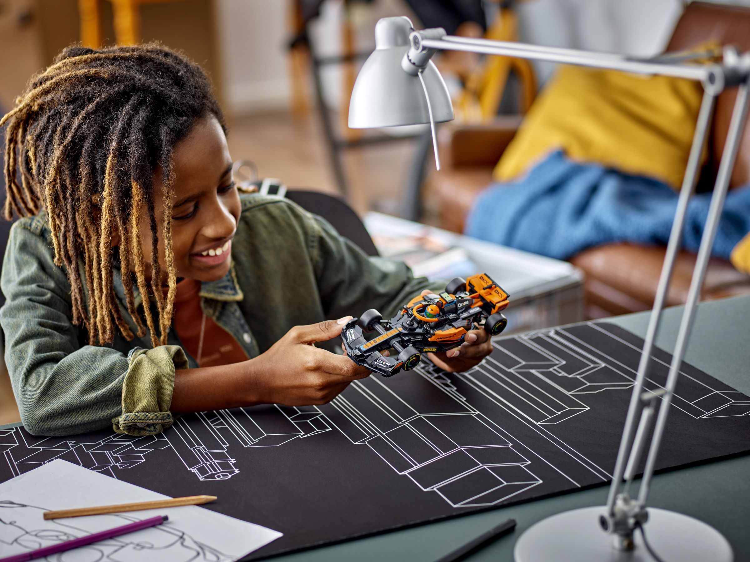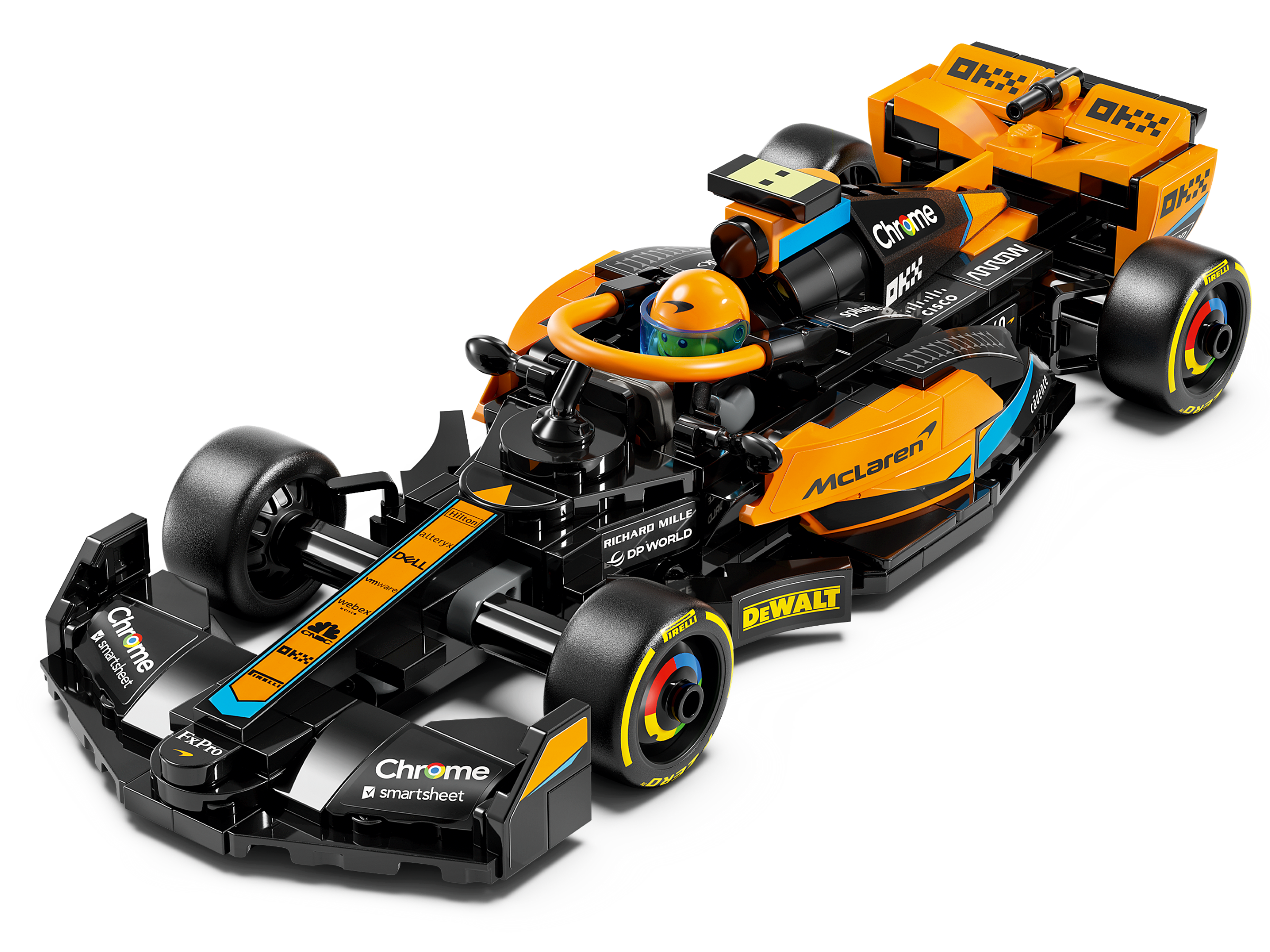 The McLaren vehicle model includes many realistic features: the black-and-papaya livery, the team-sponsor logos, the wheels with Pirelli print and the papaya safety halo. The buildable car kit also comes with a driver minifigure for kids to place behind the wheel for exciting play races.
