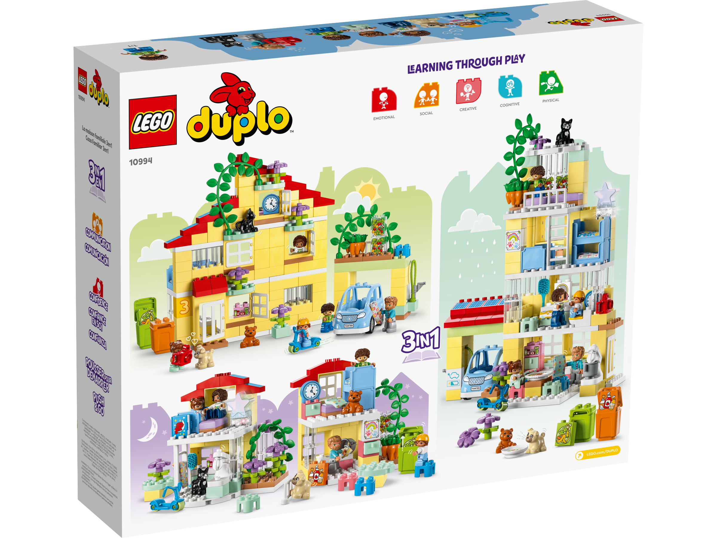 Welcome to the LEGO® DUPLO® Town 3in1 Family House (10994) toy, where a world of learning awaits. Packed with fun and educational details, this house lets toddlers aged 2 and parents play out precious family moments. With 7 figures included, parents can enjoy teaching social skills while kids explore their own imaginations and self-expression.