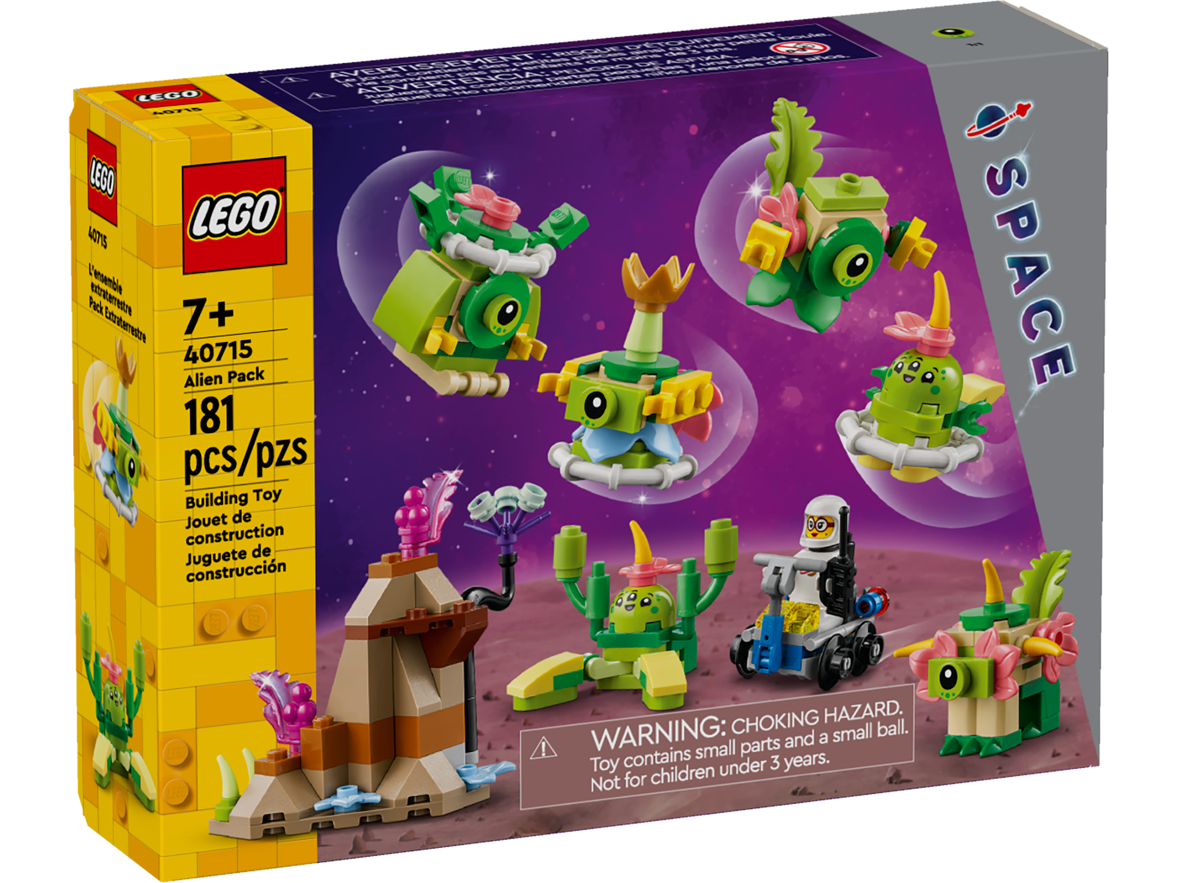 Launch imaginations with the LEGO® Alien Pack (40715), an out-of-this-world space toy for budding astronauts aged 7 and up. Packed with galaxies of play potential, the set includes 6 alien characters, 1 LEGO minifigure and an awesome space vehicle. Space-lovers can make friends with the extraterrestrials, who are decorated with new face and eye elements, before discovering the cool accessories. With a walkie-talkie, oxygen tank and more, the intergalactic adventure never has to end.