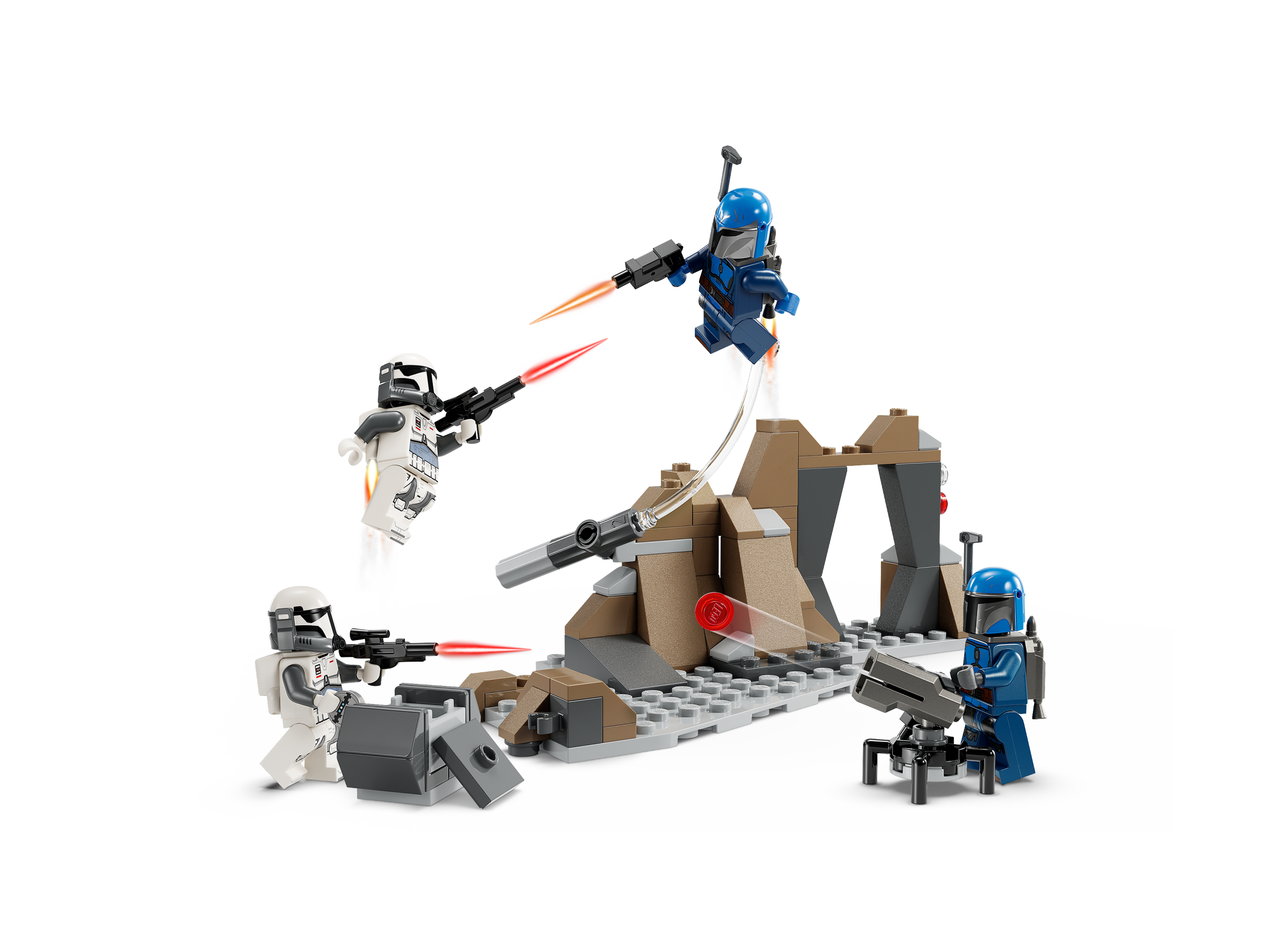 Let kids play out epic jetpack battles with the LEGO® Star Wars: The Mandalorian Ambush on Mandalore Battle Pack (75373). A super anytime fantasy gift idea for creative boys, girls and fans aged 6 and up, this buildable adventure toy playset lets them relive Star Wars: The Mandalorian Season 3 action with 4 collectible LEGO minifigures: a Mandalorian Nite Owl, Mandalorian Warrior and 2 Imperial Commandos. There are also lots of LEGO accessories, including blasters, blaster pistols and jetpack elements, plus a transparent element with a handle to make a LEGO minifigure ’fly’. A buildable rock formation with a cave and a stud-shooting cannon add to the inspiring action-play possibilities.