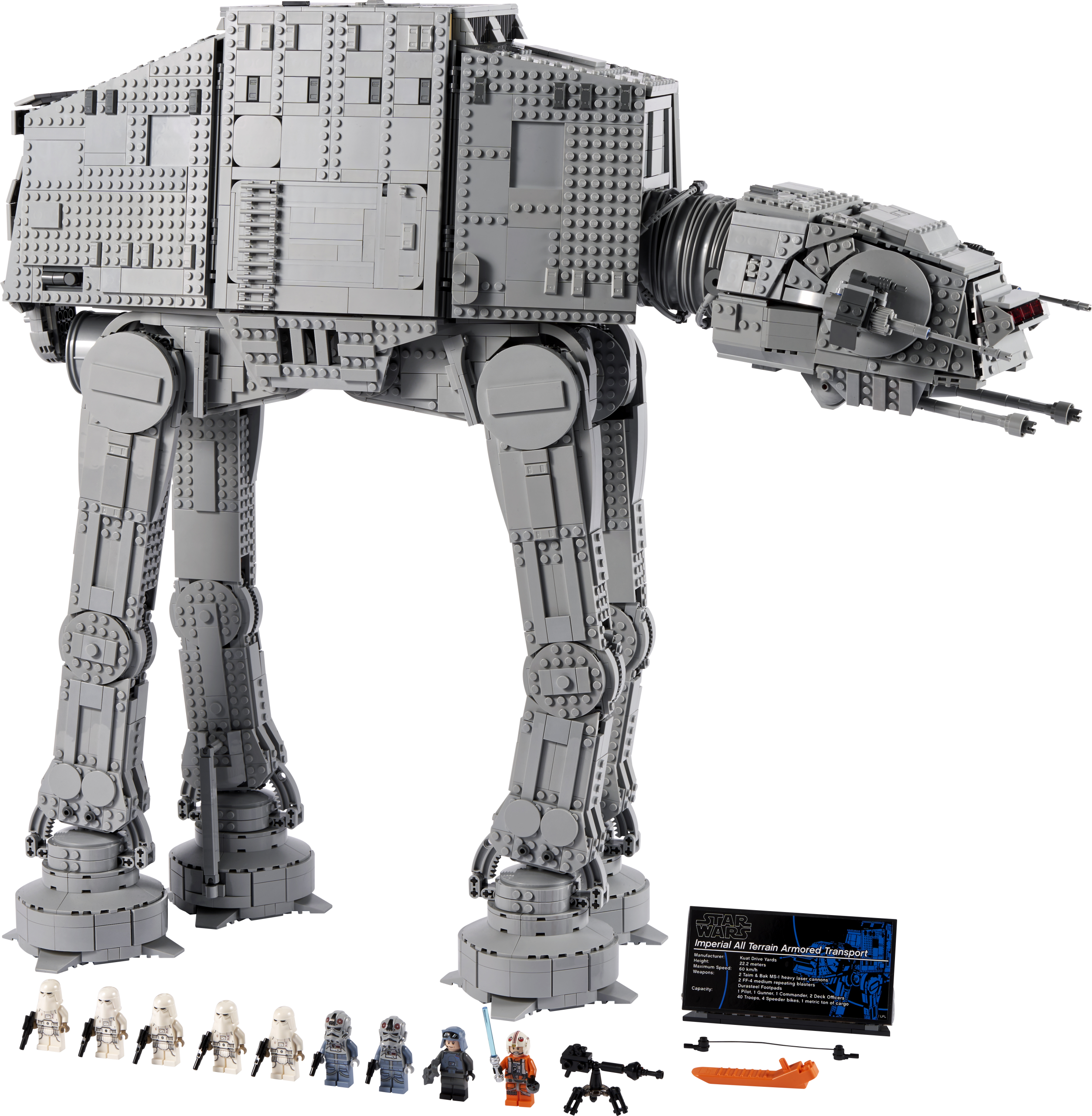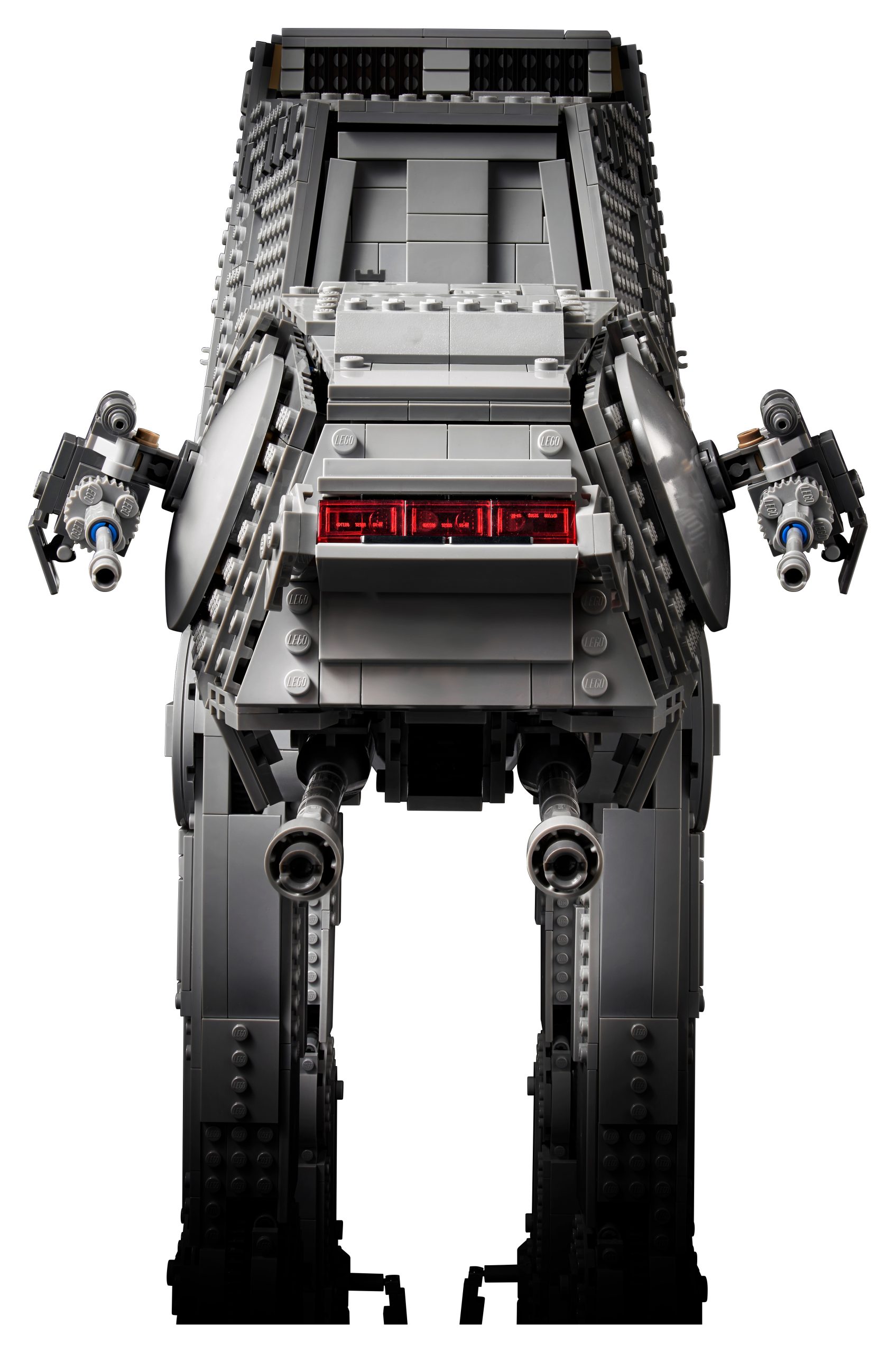 The AT-AT measures over 24.5 in. (62 cm) high and is easily opened to view the detailed interior. The main body has space for 40 LEGO minifigures (General Veers and Luke Skywalker are among 9 in this set), 4 speeder bikes (2 included) and the included E-Web heavy repeating blaster. The head/cockpit seats 2 LEGO minifigures and has space for 1 more. An information plaque completes a magnificent display piece.