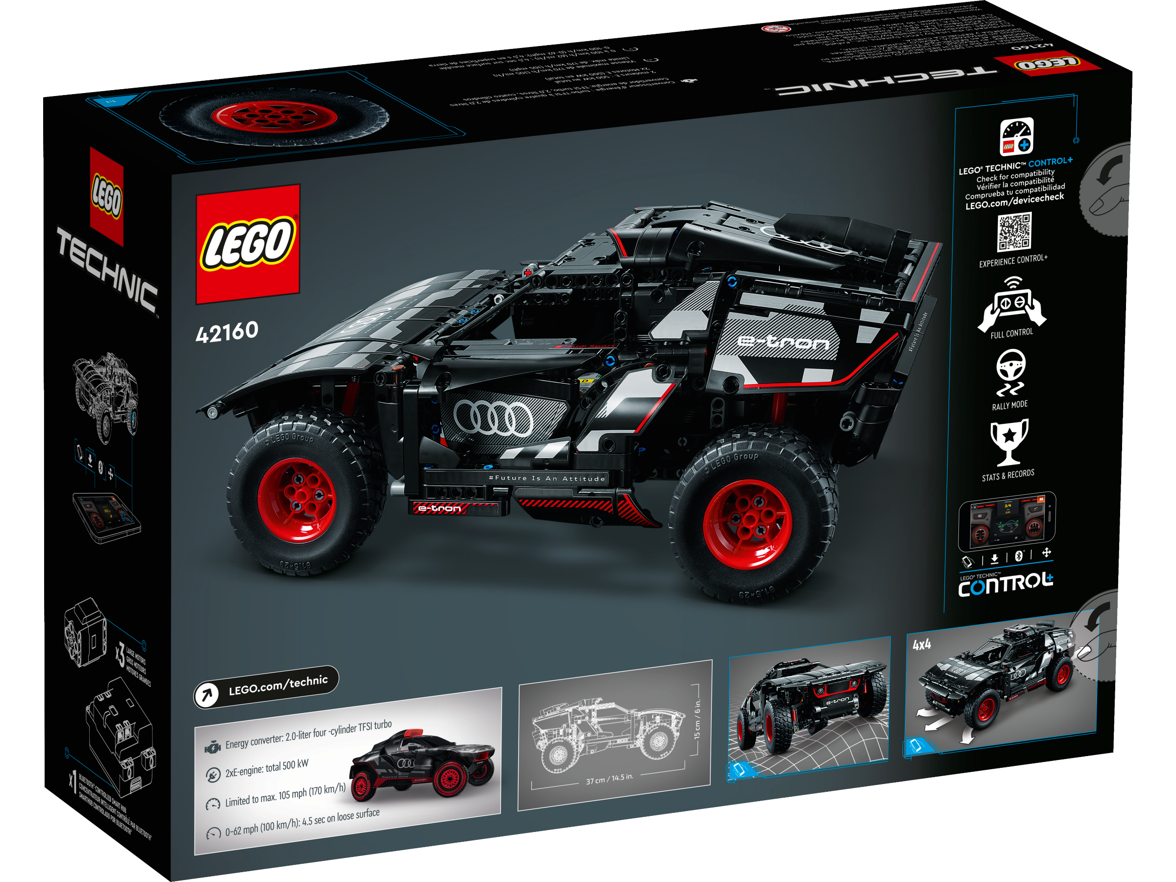 Kids who love rally cars can put their skills to the test as they build this LEGO® Technic™ Audi RS Q e-tron 42160 model. As they build, they’ll gain an insight into the real-world electric car that Audi built to navigate the harsh desert conditions of the Dakar Rally. This model incorporates many realistic details, like the individual suspension on each of the car’s 4 wheels. It also features a new Technic wheel element created especially for this model to reflect the full-sized Audi’s wheel design.