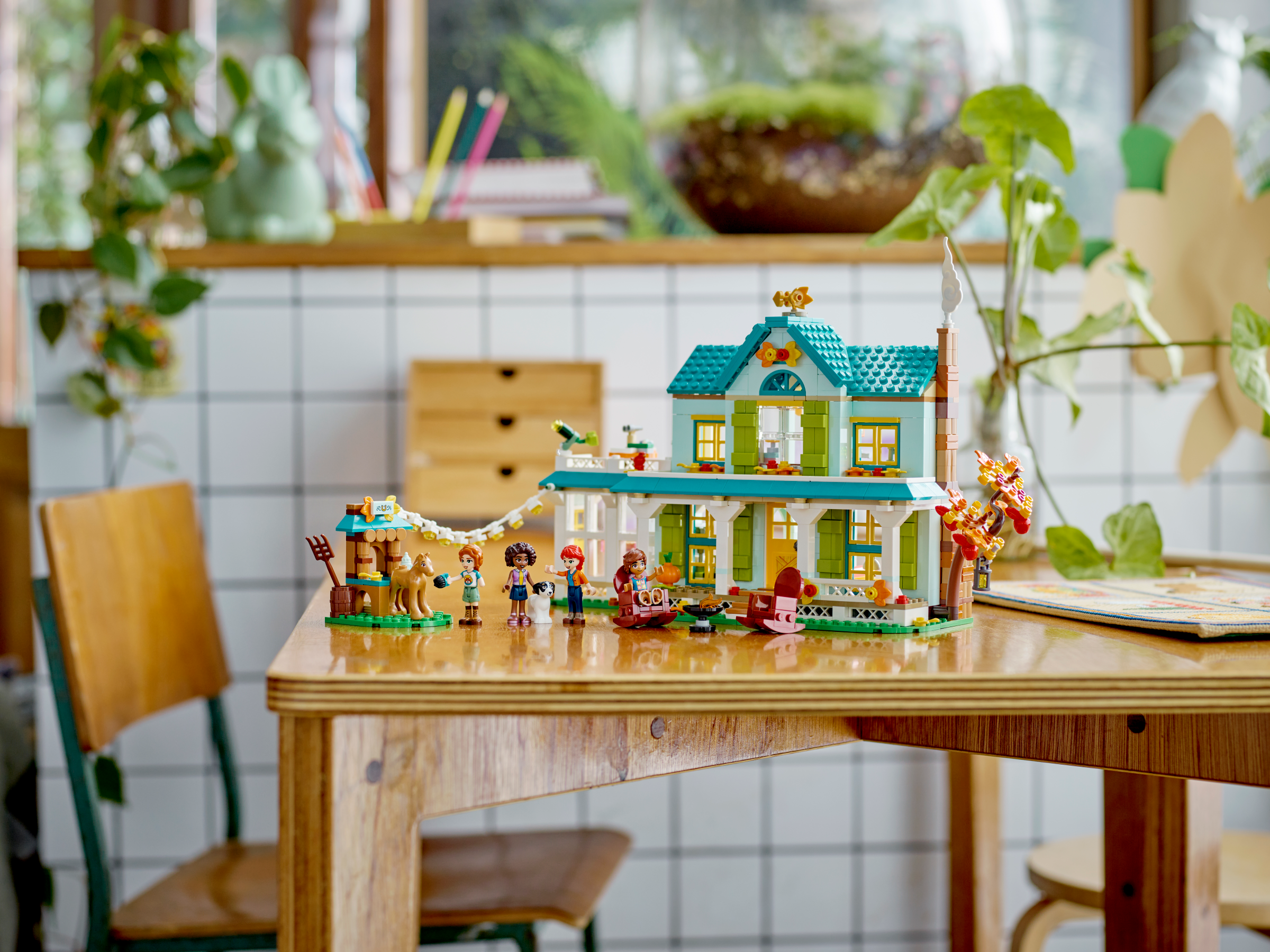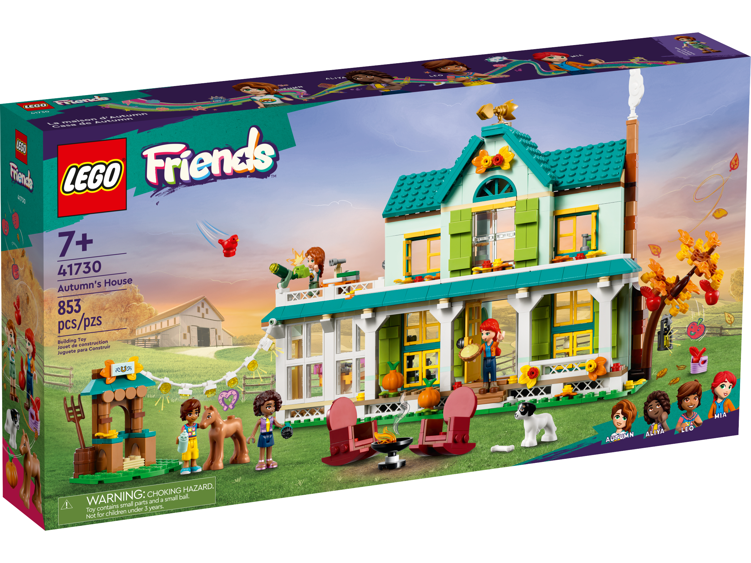 Discover a house filled with friendship for ages 7 with this LEGO® Friends Autumn’s House (41730). Kids will love meeting kindhearted Autumn. She’s invited her friends Leo and Aliya over and has activities planned for everyone. Baking fans can help Leo pick apples and then cook a pie in the kitchen. Meanwhile, young animal lovers can join Aliya to care for the new foal. The house has lots of rooms to explore, including a kitchen, cozy living room, dining area, bathroom and Autumn’s nature-inspired bedroom. There are lots of outdoor space too, including a balcony with a telescope, notebook and binoculars where the friends can go to spot birds.
