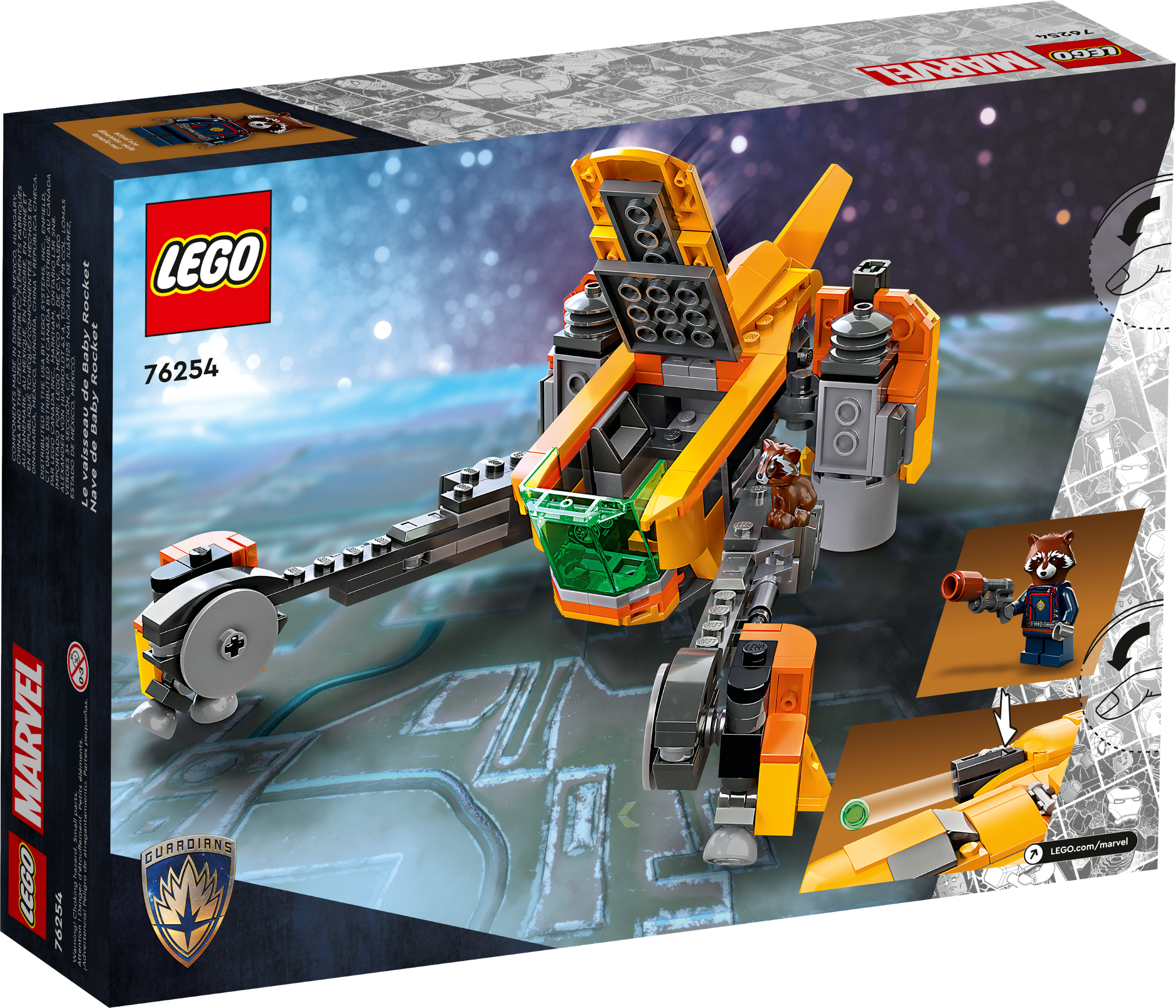 Super Hero spacecraft from Marvel Studios’ Guardians of the Galaxy Volume 3. LEGO® Marvel Baby Rocket’s Ship (76254) will take kids aged 8 on endless imaginative adventures.