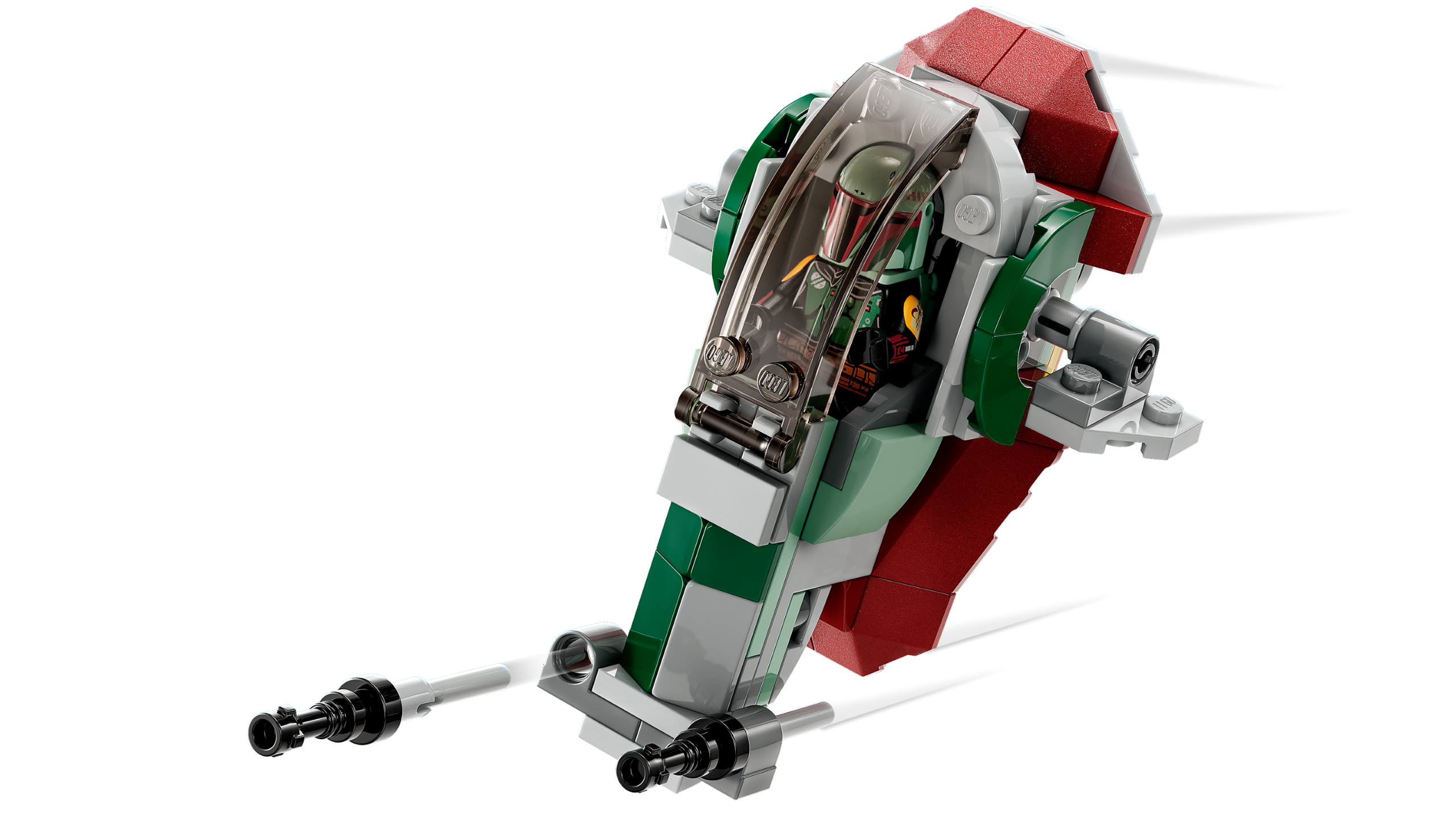 Give kids a cool introduction to LEGO® Star Wars™ building toys with Boba Fett’s Starship Microfighter (75344) for ages 6 and over. This microscale LEGO brick version of the iconic starship, as seen in the classic Star Wars saga, Star Wars: The Mandalorian and Star Wars: The Book of Boba Fett, features 2 flick shooters for attacking enemy starfighters and adjustable wings for flight and landing. The included LEGO minifigure of Boba Fett, which comes with a blaster and a jetpack accessory element, fits inside the opening cockpit.