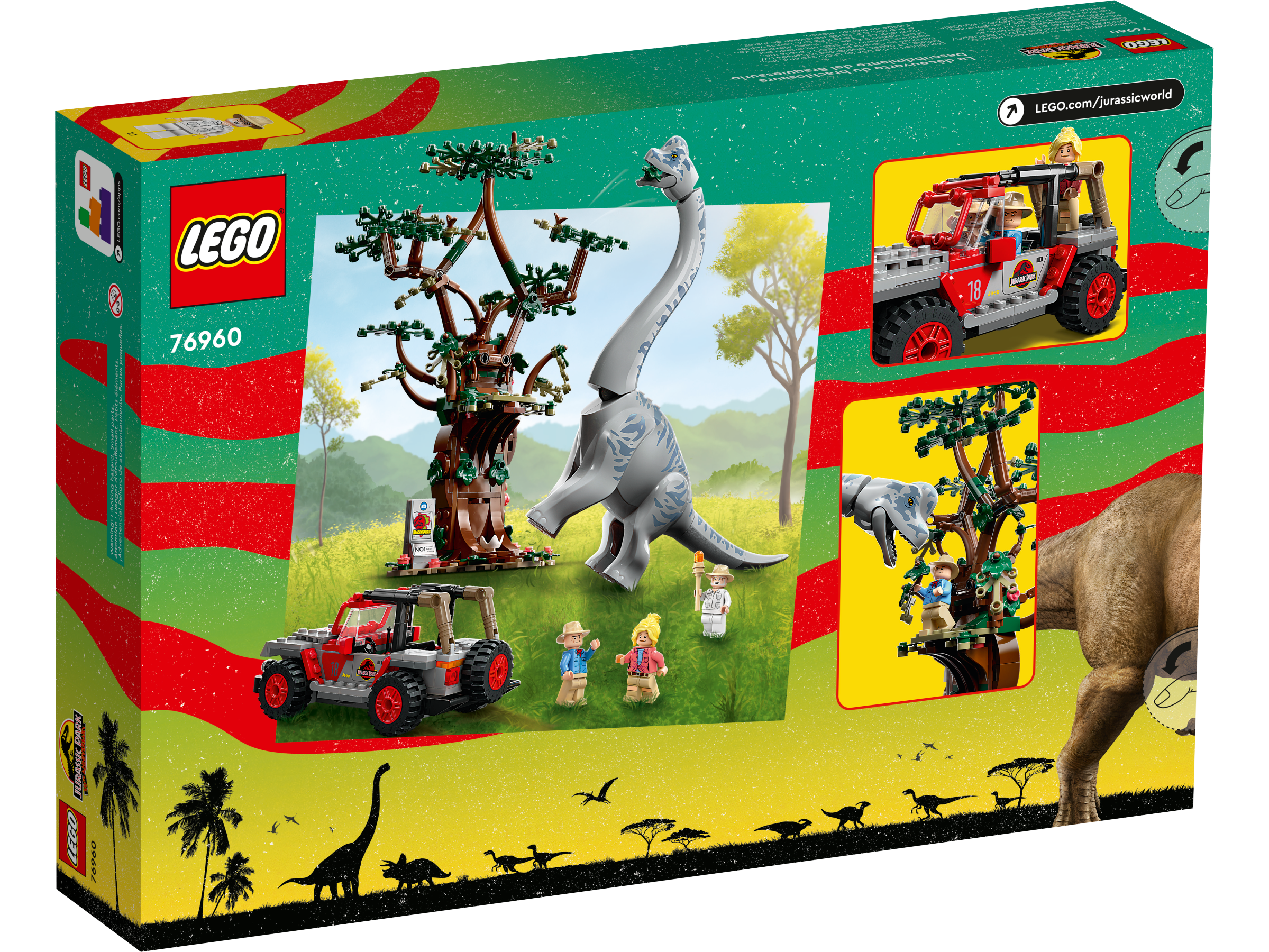 Capture the sense of awe that Dr. Ellie Sattler and Dr. Alan Grant felt when they first glimpsed a majestic Brachiosaurus, with this LEGO® Jurassic World Brachiosaurus Discovery (76960) playset for ages 9 and up. A super gift idea for Jurassic Park fans, it features a posable Brachiosaurus, the tallest LEGO dinosaur figure to date, plus a buildable toy Jeep® Wrangler and a tree. The Jeep has space for the 3 minifigures – Dr. Alan Grant, Dr. Ellie Sattler and John Hammond – and the tree has a viewing platform and detachable leaf elements to ‘feed’ to the Brachiosaurus, as Alan Grant did in the movie.