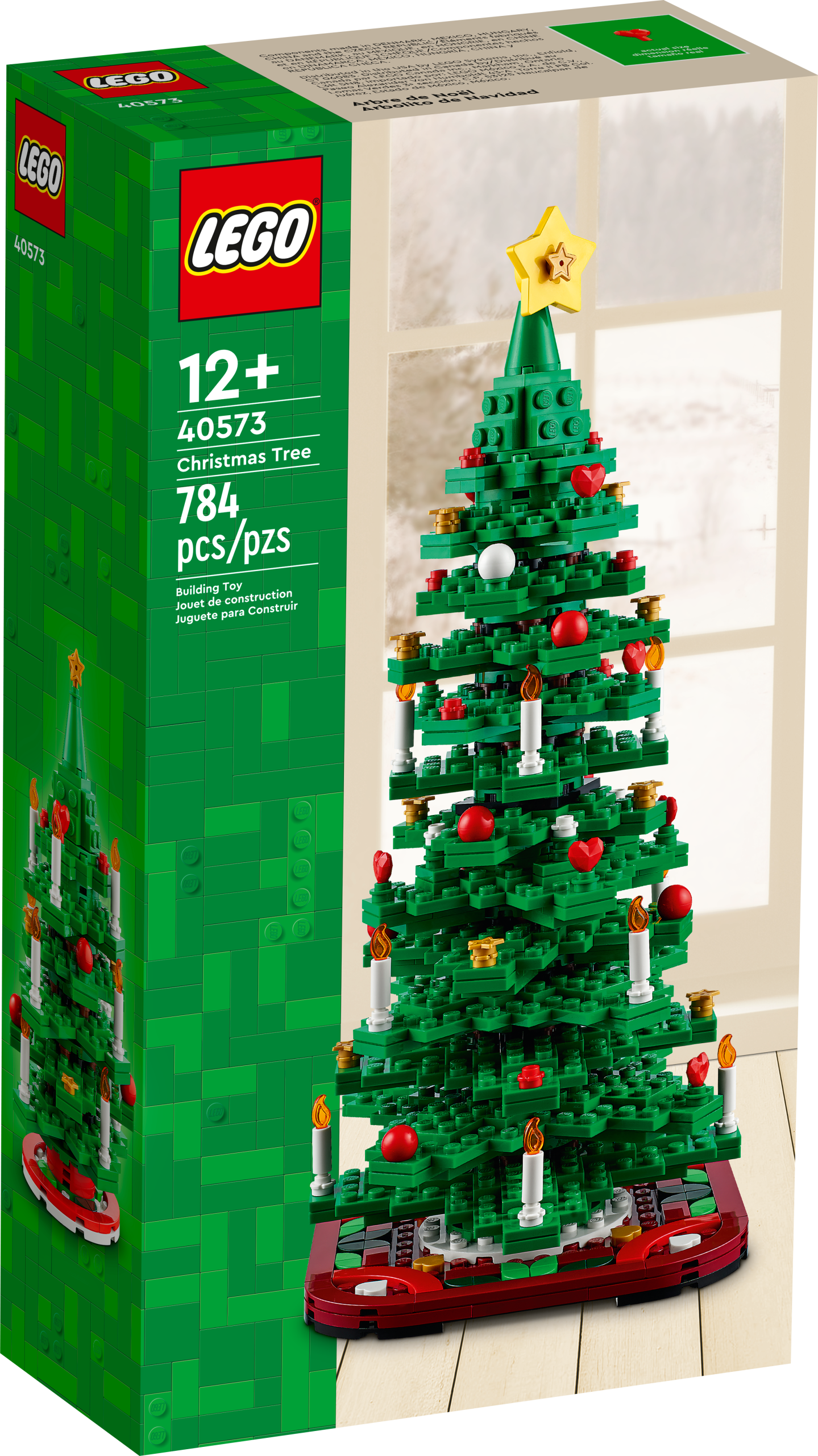 Create an eye-catching festive display with this beautiful LEGO® Christmas Tree (40573) building kit. A perfect gift this holiday season, you can choose between building one tree or two smaller tree models. Decorate your very own miniature Christmas tree with colorful ornaments and candles. Add the yellow star to the top for the perfect finishing touch. Display your finished build on the red tree skirt for a beautiful holiday centerpiece or tabletop decoration.