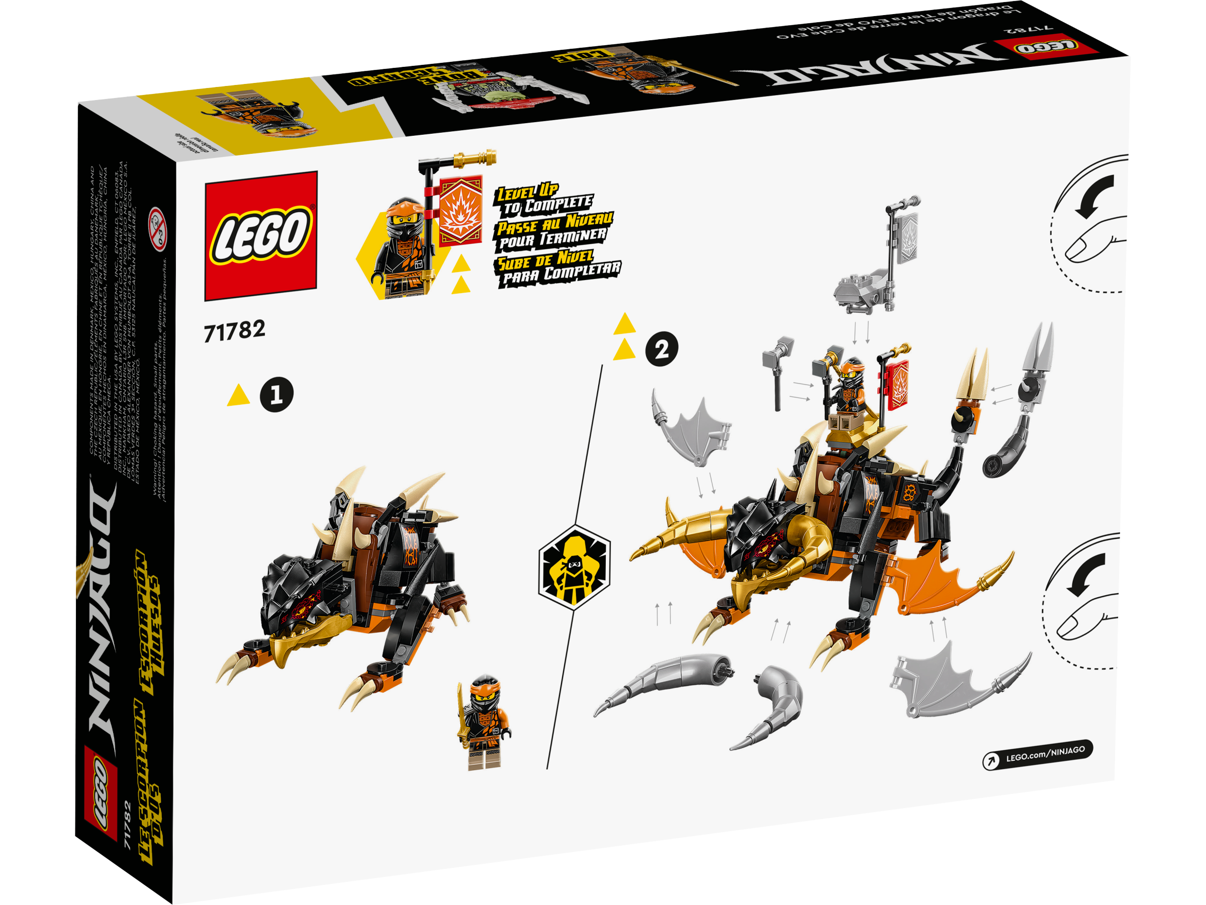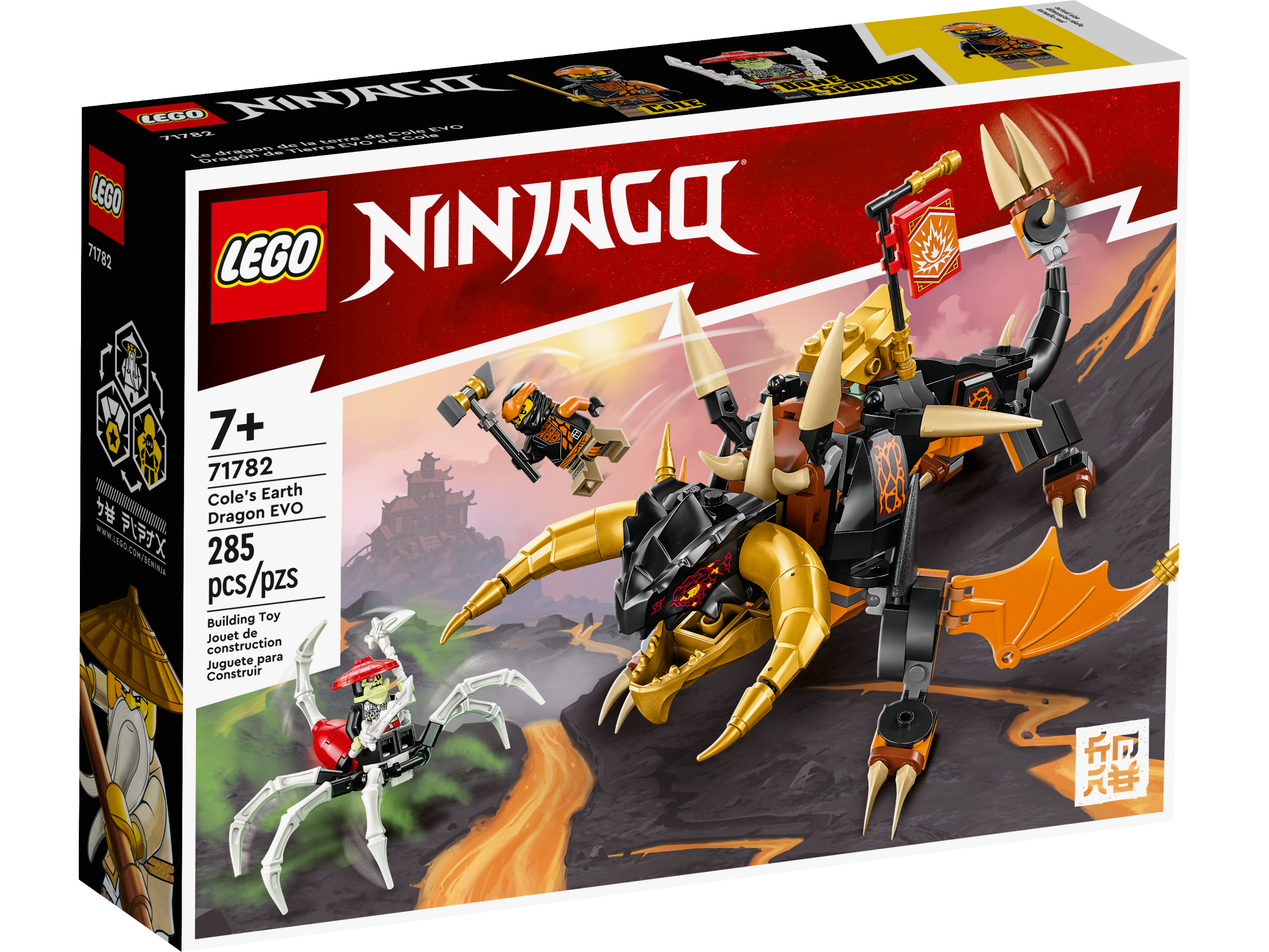 Kids aged 7 will be excited to stage enthralling battles with this LEGO® NINJAGO® Cole’s Earth Dragon EVO (71782) playset. During the action, kids can upgrade the posable dragon toy to make it even bigger and more powerful by adding golden wings, horns and a tail.
