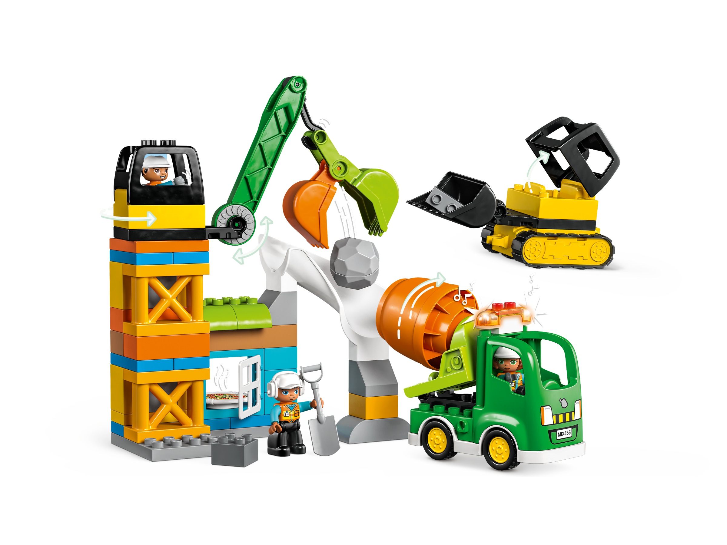 This construction toy will provide hours of creative fun with so much on site for little fingers to get busy with. The crane swivels and its grabbing bucket opens and closes. The brightly colored, drivable cement mixer’s drum actually spins. Providing sensory stimulation, its siren sounds with 3 different noises and its lights flash. Help your preschooler role-play the world they see around them with LEGO DUPLO Town toys.