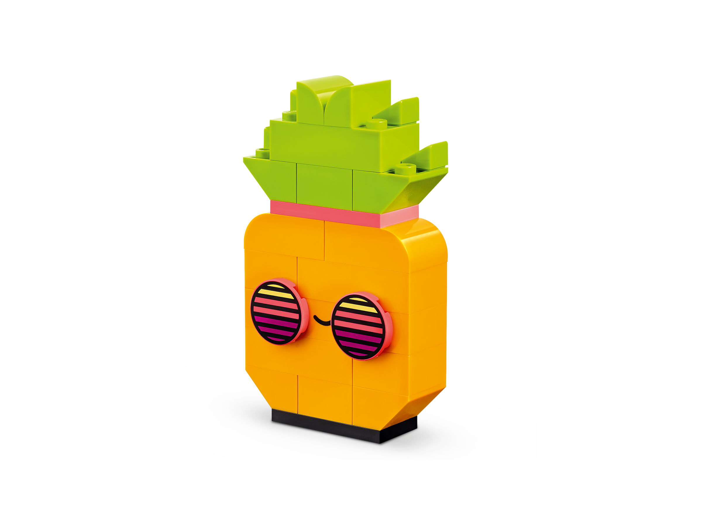 This versatile building kit contains 333 bricks in various sizes and vibrant neon colors. 18 of the bricks feature expressive eyes that kids can use to bring their creations to life. Printed building instructions are included for 5 fun models – a pineapple, highlighter pen, car, alien and roller skates – giving kids the creative confidence they need to build whatever they imagine! A digital version of the set’s building instructions can also be found within the LEGO Builder app.