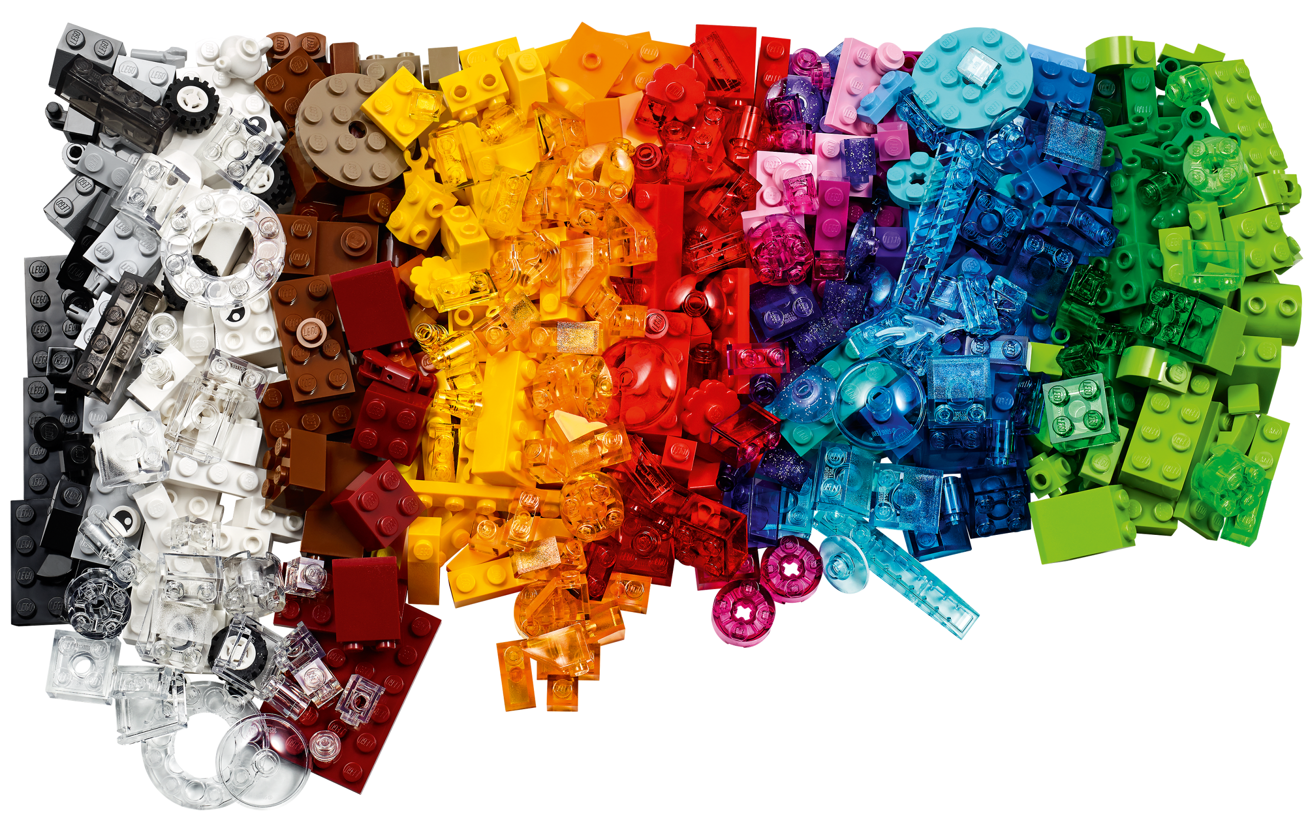 The LEGO® Classic Creative Transparent Bricks (11013) building set features a dazzling array of transparent LEGO pieces in all kinds of colors, shapes and sizes, plus an exciting selection of classic LEGO bricks, pieces, eyes and wheels. Everything kids need for endless hours of creative play.