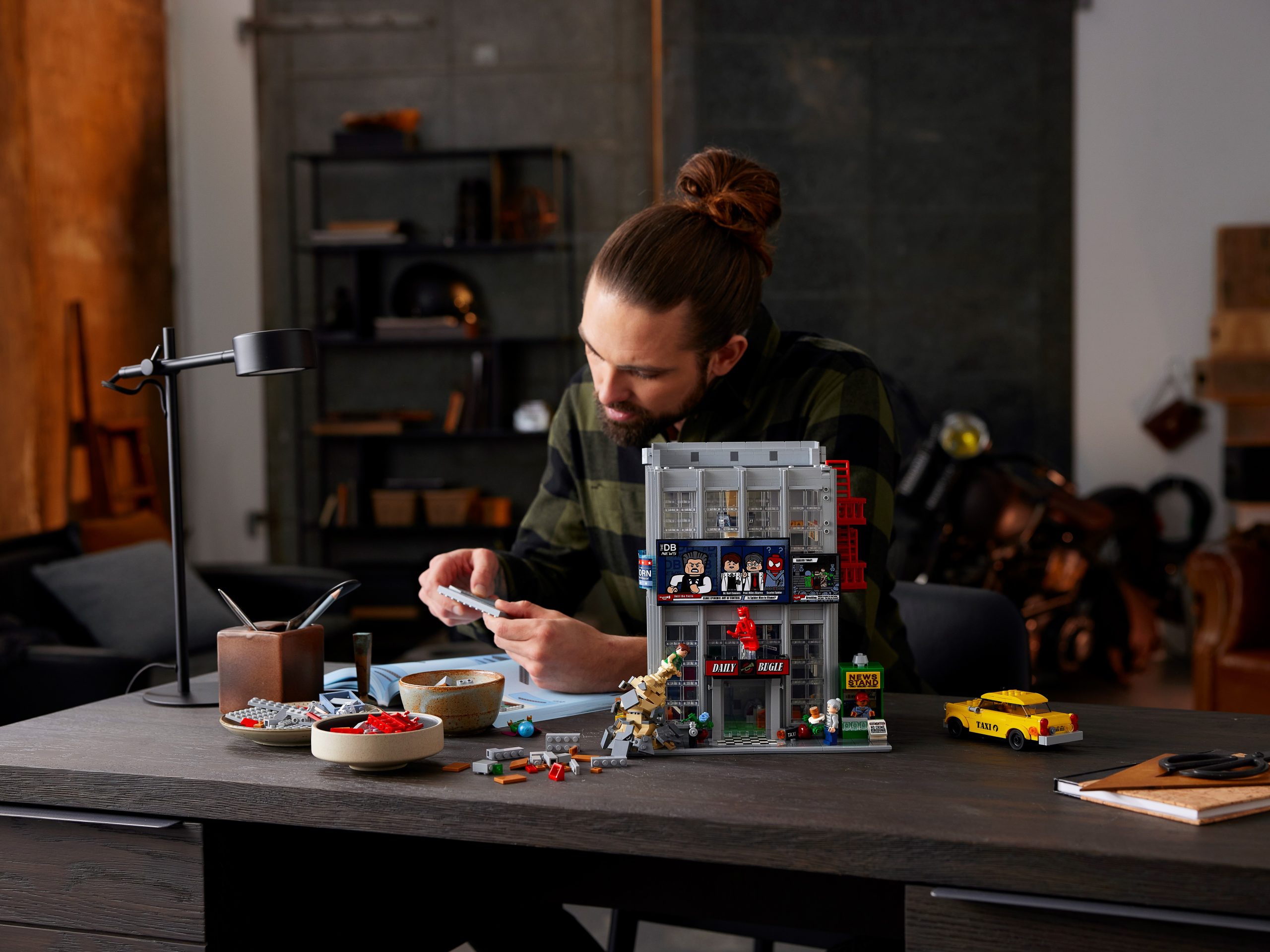 Measuring over 32 in. (82 cm) high, this 3,789-piece recreation of the Daily Bugle office block provides a towering backdrop for an all-star cast of Marvel heroes and villains, many new to this set! The building is filled with authentic details, fascinating features and classic comic-book action – from the New York taxi cab outside to the penthouse office of the Bugle’s Editor in Chief. Marvel enthusiasts will find the model challenging but highly rewarding to build. Once it’s completed, the removable floors, roof and detachable facades reveal this Marvel tribute for all to admire.