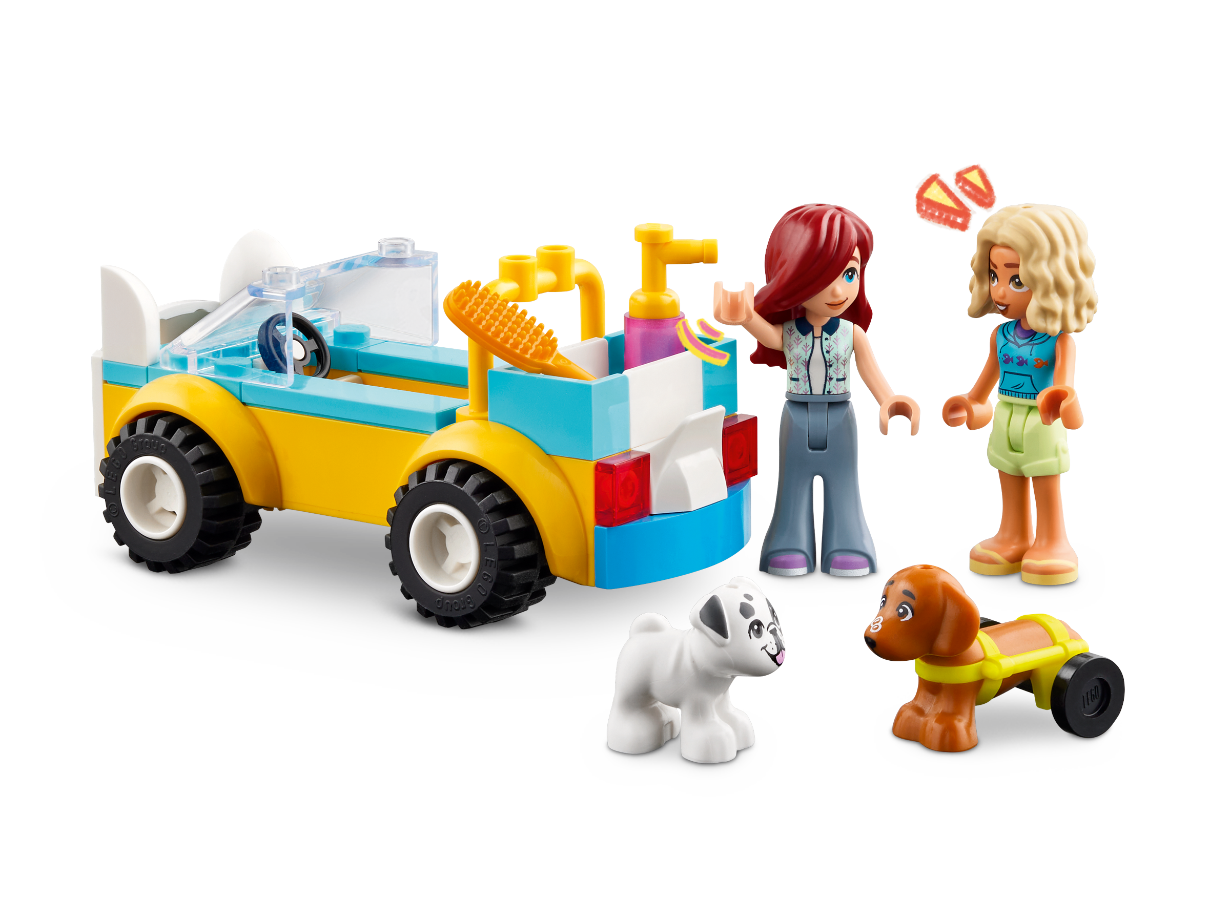 The LEGO® Friends Dog-Grooming Car (42635) vehicle playset makes a great gift idea for kids aged 4 who love animal care toys. Girls and boys can enjoy hours of imaginative play with the 2 mini-dolls, 2 dog figures, a buildable car, pool and lots of pet care accessories.