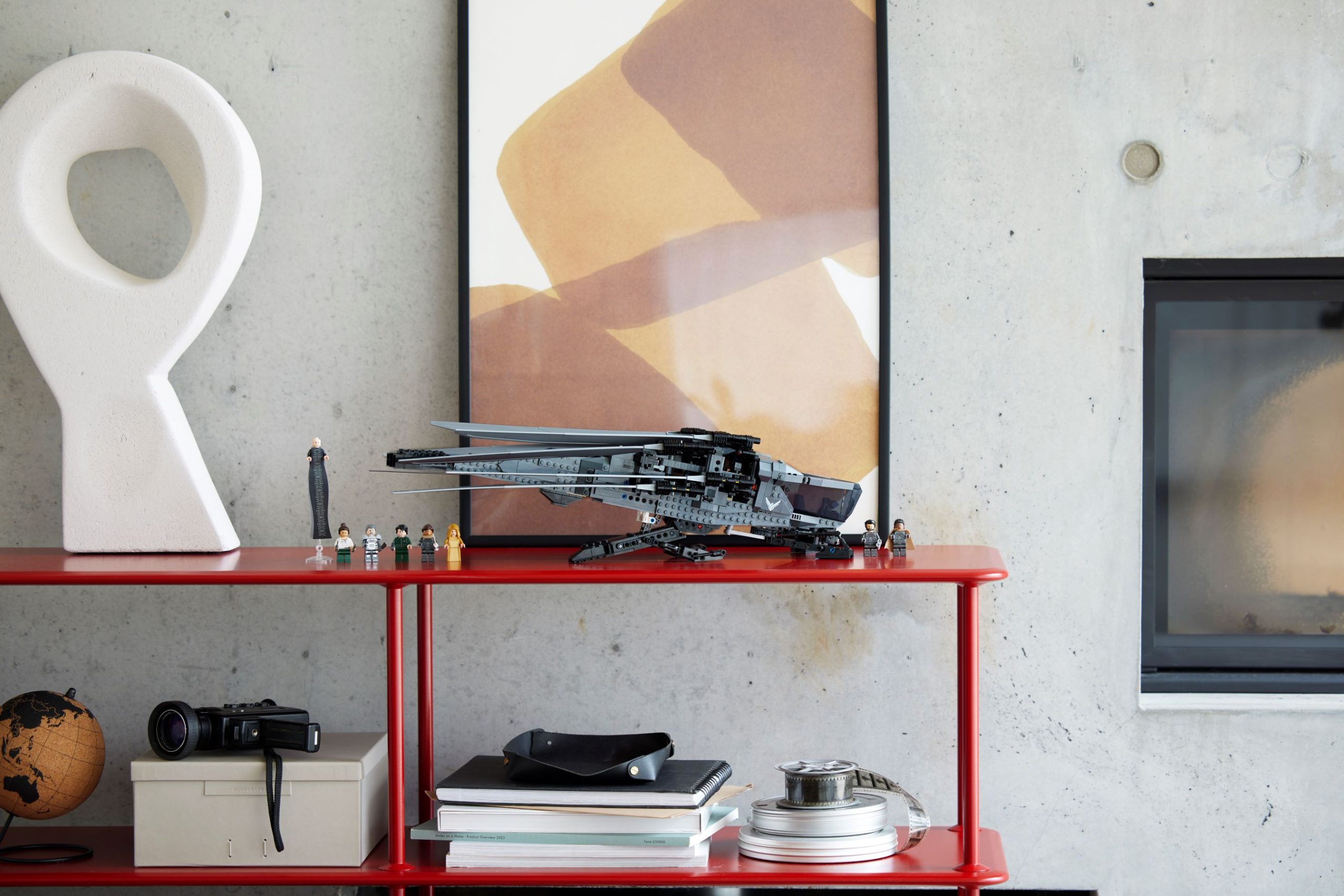 This premium-quality replica features fold-out, flappable wings, deployable landing gear and an opening cockpit. The set also includes 8 iconic characters from the film: Paul Atreides, Lady Jessica, Gurney Halleck, Chani, Leto Atreides, Liet Kynes, Duncan Idaho and Baron Harkonnen in his long robe.