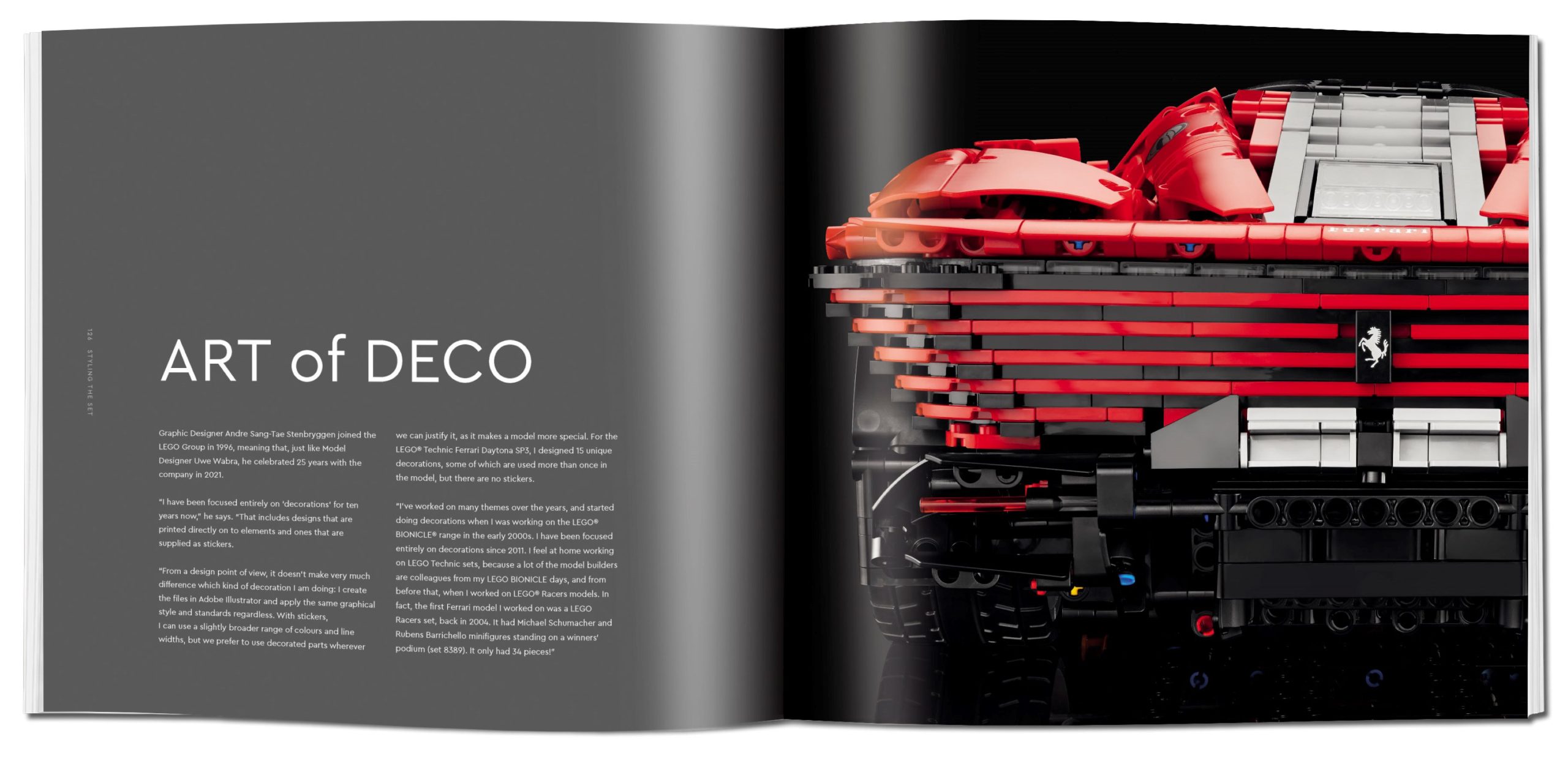 Learn about the creative process behind a LEGO® Technic™ model with this LEGO Technic Ferrari Daytona SP3 The Sense of Perfection book. Uncover insights into the creation of the Ferrari Daytona SP3 (42143) set and the collaboration between the LEGO designers and the team at Ferrari. This 240-page book has the same beautiful artwork as the original book but with a glossy hard cover. Please note, unlike the original, this version is not a limited edition and does not come with a slipcover case.
