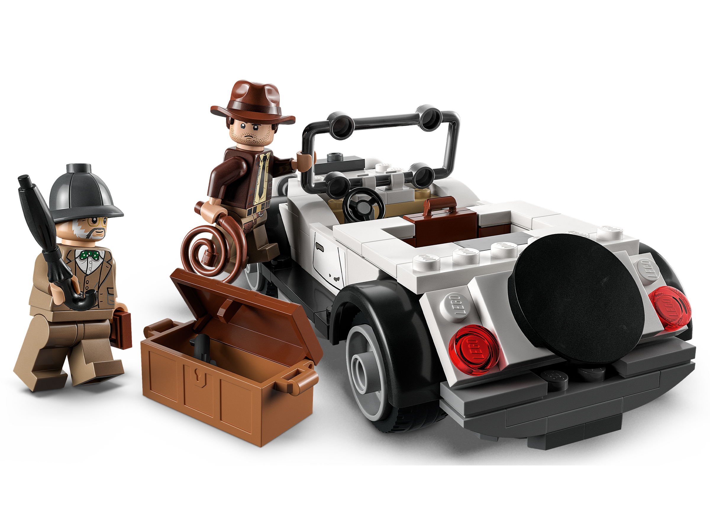 LEGO® Indiana Jones™ Fighter Plane Chase (77012) comes with everything kids aged 8 need to enjoy hours of creative play. The playset features a brilliant fighter plane with a propeller, 2 stud shooters and removable wings, plus a supercool vintage convertible car with a chest in the back containing an umbrella and a pistol.