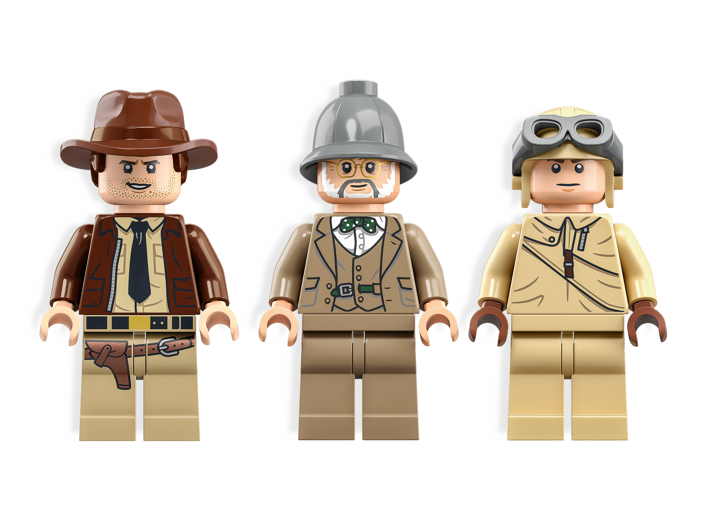The building set comes with 3 minifigures: Indiana Jones with his famous whip, his father Professor Henry Jones Sr.™ holding a diary, and a fighter pilot so kids can play out a famous chase scene from the Indiana Jones and the Last Crusade movie.