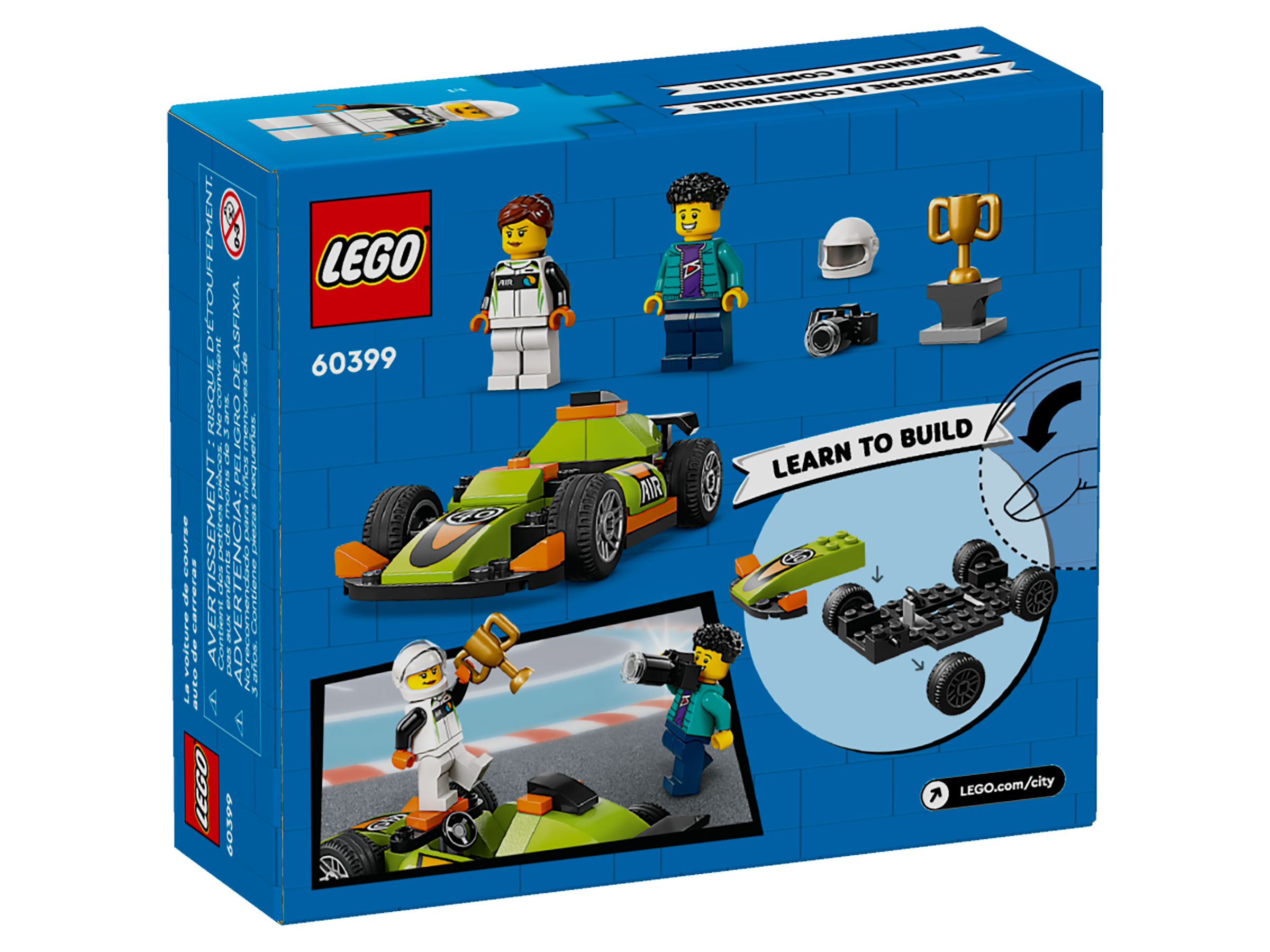 The LEGO® City Green Race Car (60399) opens the door to a world of creative play for kids aged 4 . Prepare to cheer on your little racer and embrace the magic of playtime together with this LEGO racing car toy, featuring sporty tires and a cool rear spoiler. This set also includes photographer and racing driver minifigures, plus a winner’s trophy for imaginative storytelling.