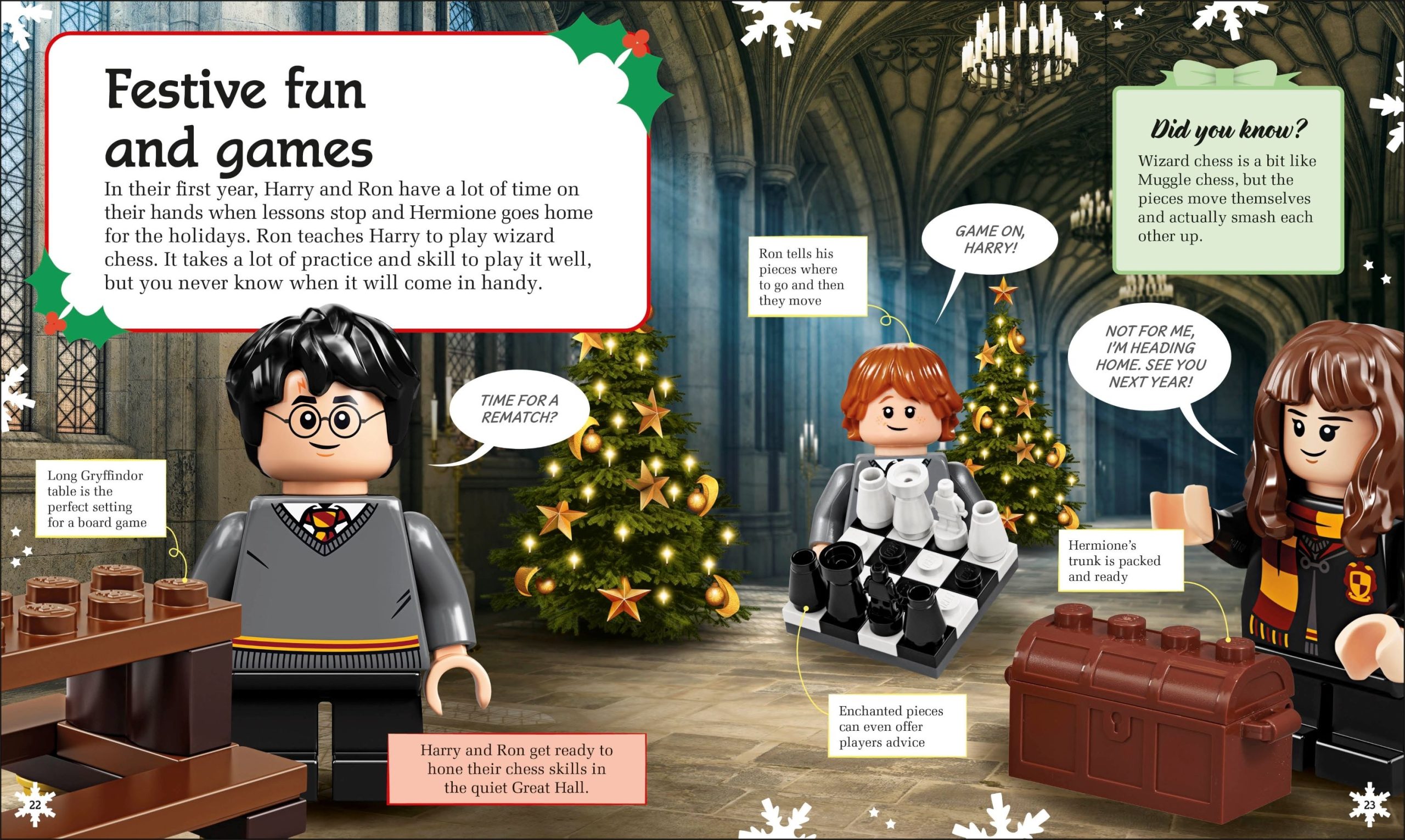 Get ready for spellbinding fun with Hogwarts™ at Christmas. This colorful, illustrated book for ages 6 and up is sprinkled with the latest LEGO® Harry Potter™ sets, minifigures and festive scenes. Fans can join their favorite characters for a feast in the Great Hall, admire the castle’s Christmas decorations, play a game of Wizard’s Chess and much more. A magical holiday gift for kids, the book comes with a Harry Potter minifigure in Yule Ball robes.