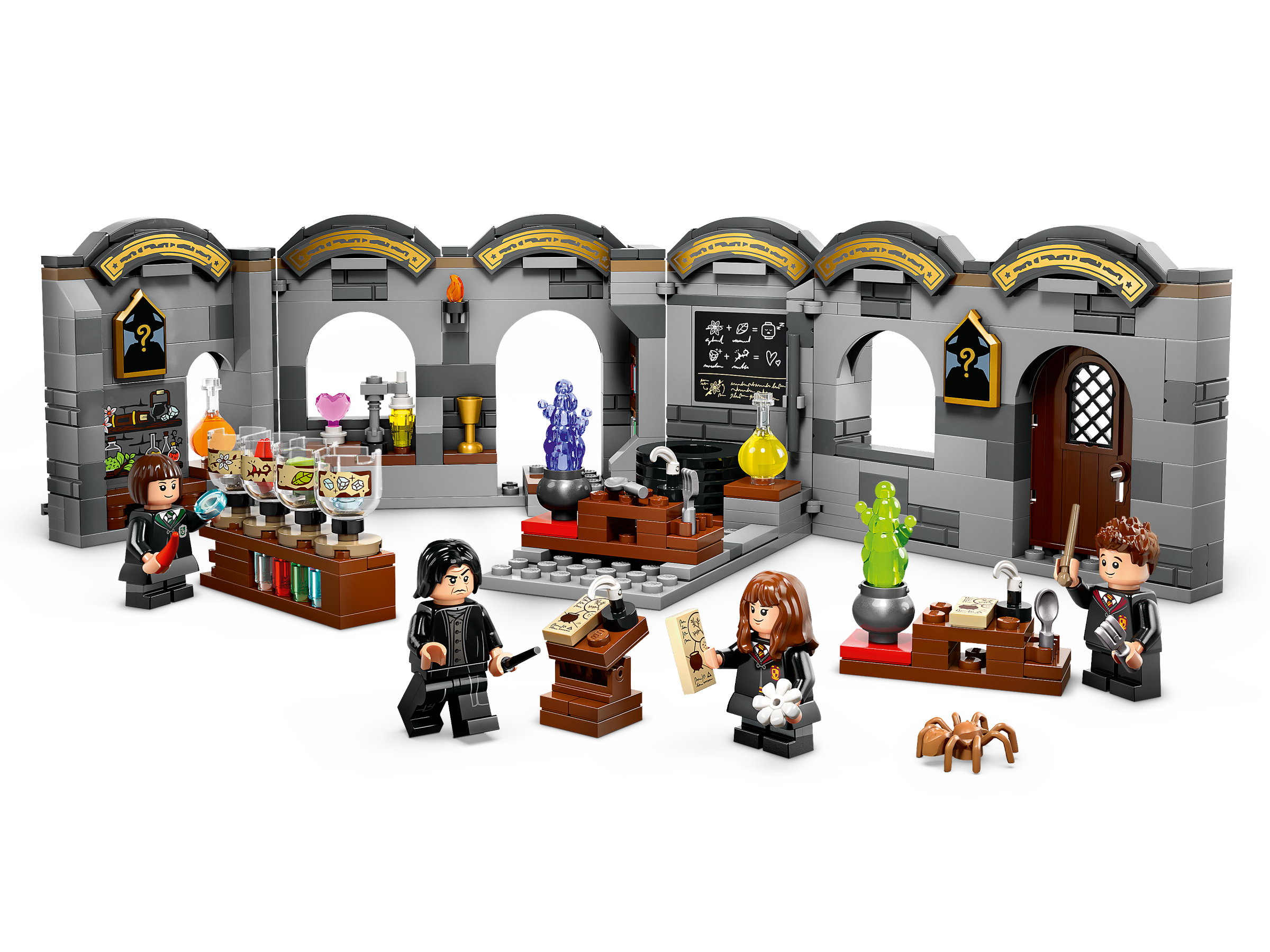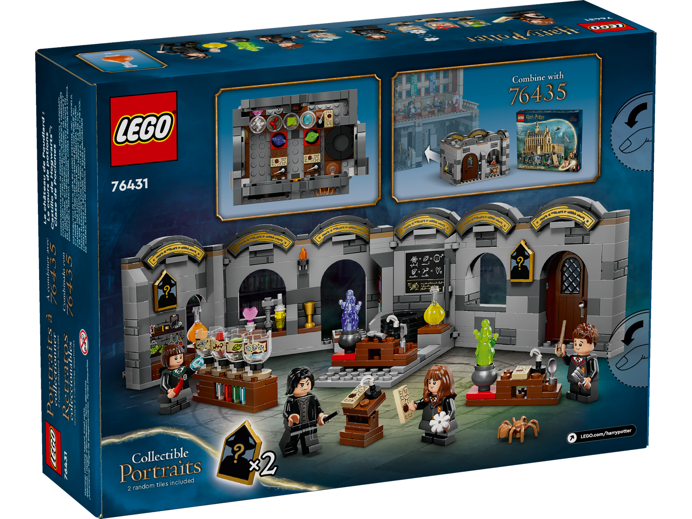 Let your young witch, wizard or Muggle™ join the Potions Class at Hogwarts™ Castle with this collectible LEGO® Harry Potter™ wizard toy (76431) for kids aged 8 and up. It features a buildable Harry Potter classroom that opens up for easy play and is packed with authentic details – a blackboard with potion-making instructions, bottles of potion ingredient elements to stir in the cauldron and other equipment to inspire creative play. There are also 2 of 14 collectible Hogwarts portraits on display, plus LEGO minifigures of Professor Severus Snape™ and students Hermione Granger™, Pansy Parkinson and Seamus Finnigan to role-play Harry Potter stories.