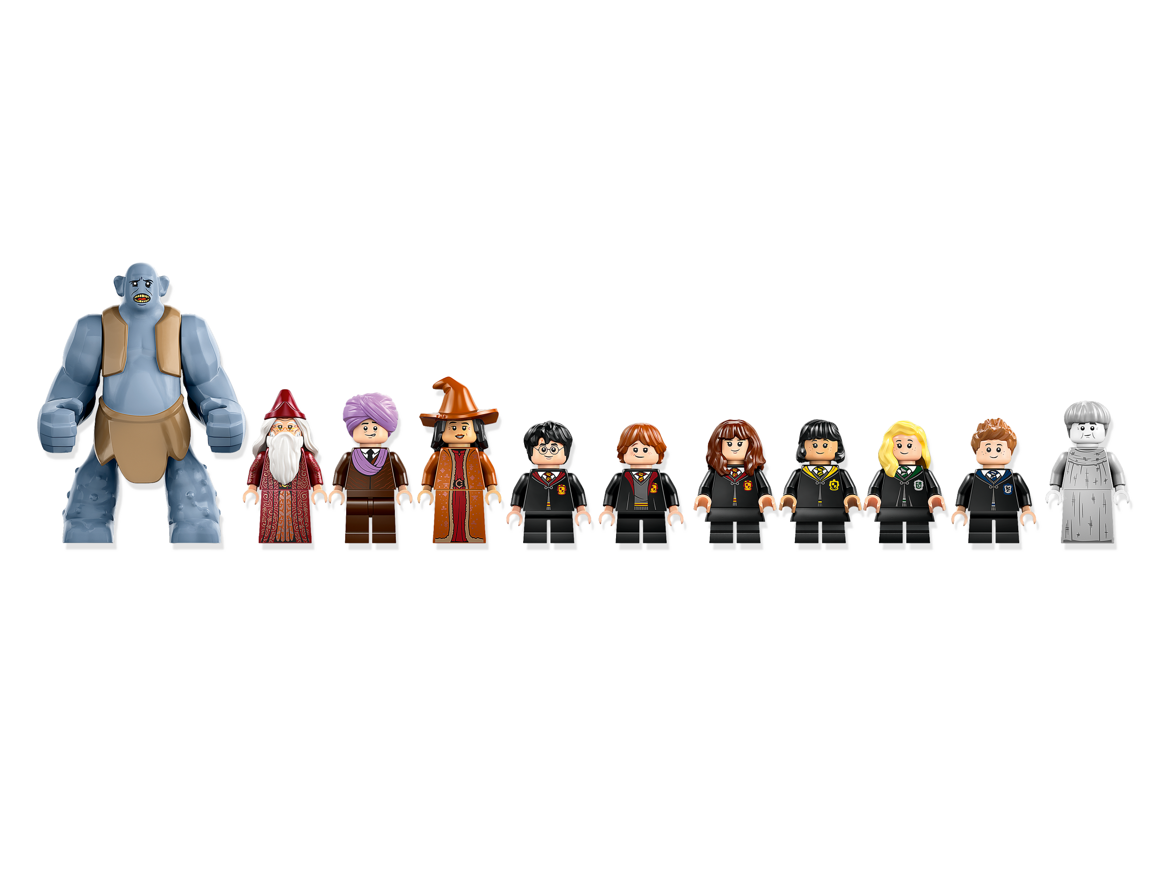 This collectible set features 11 characters, including Harry Potter, Hermione Granger™, Albus Dumbledore™ and a mountain troll for creative play, plus 5 of 14 random collectible Hogwarts portraits for display.