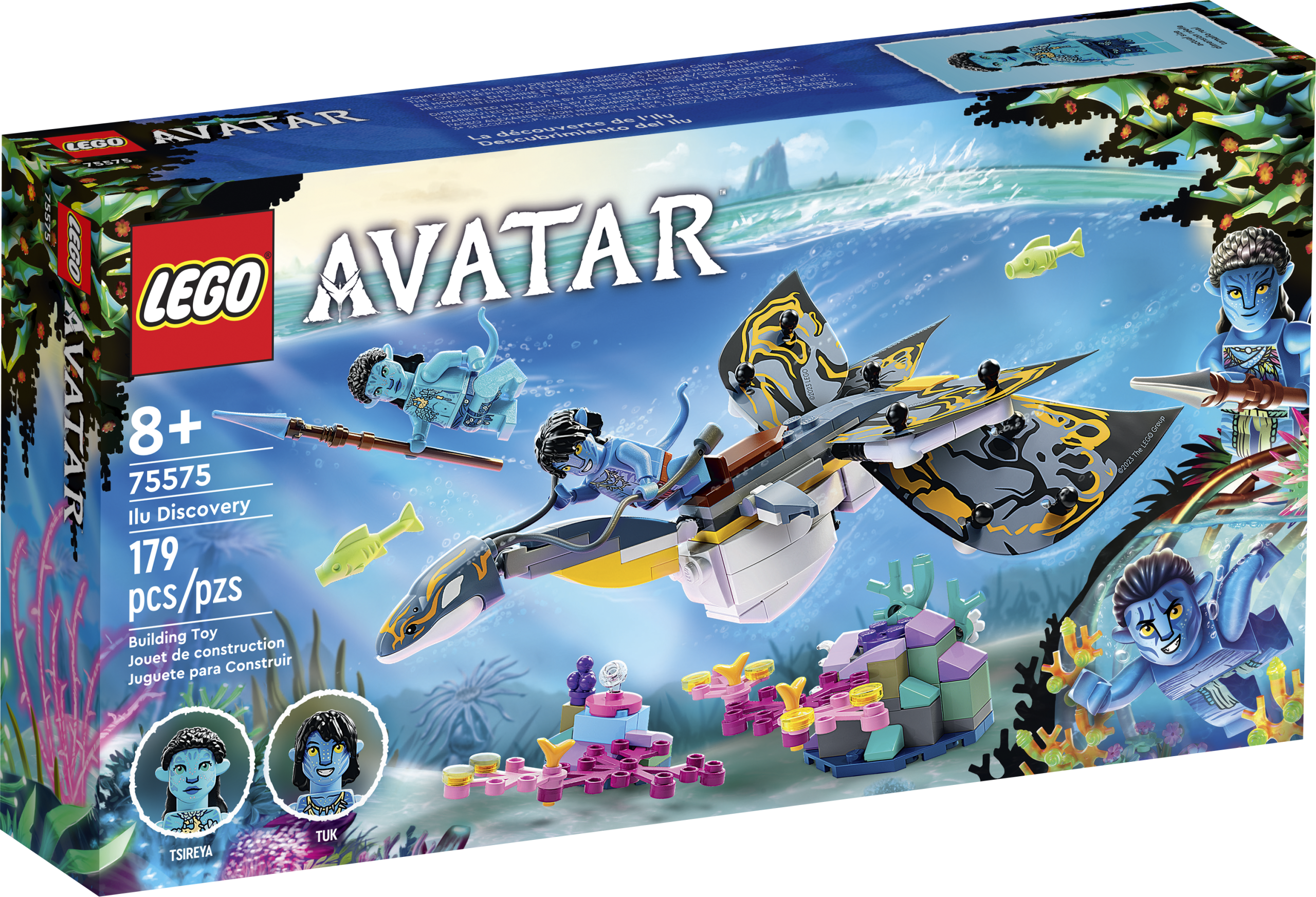Kids and Avatar film fans aged 8 can travel to the imaginary exoplanetary moon of Pandora with this LEGO® Avatar Ilu Discovery (75575) set. Relive favourite moments from Avatar: The Way of Water or create dynamic scenes and storylines with the posable ilu figure, Tsireya and Tuk minifigures and Pandoran coral-reef setting.