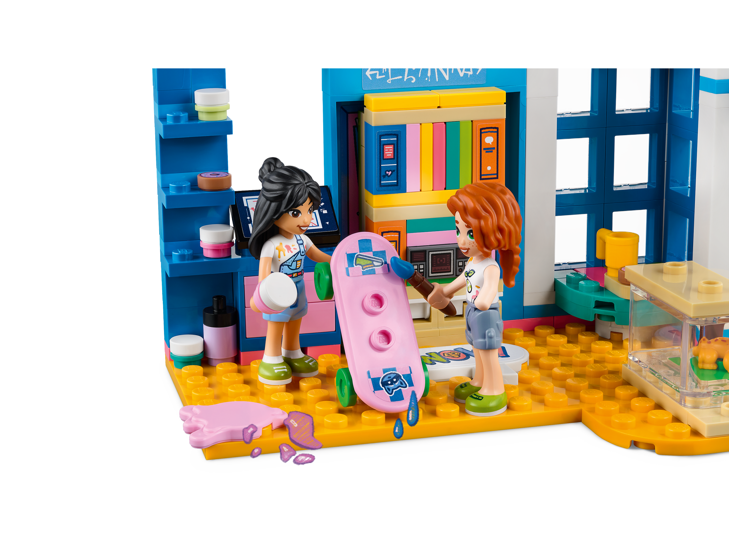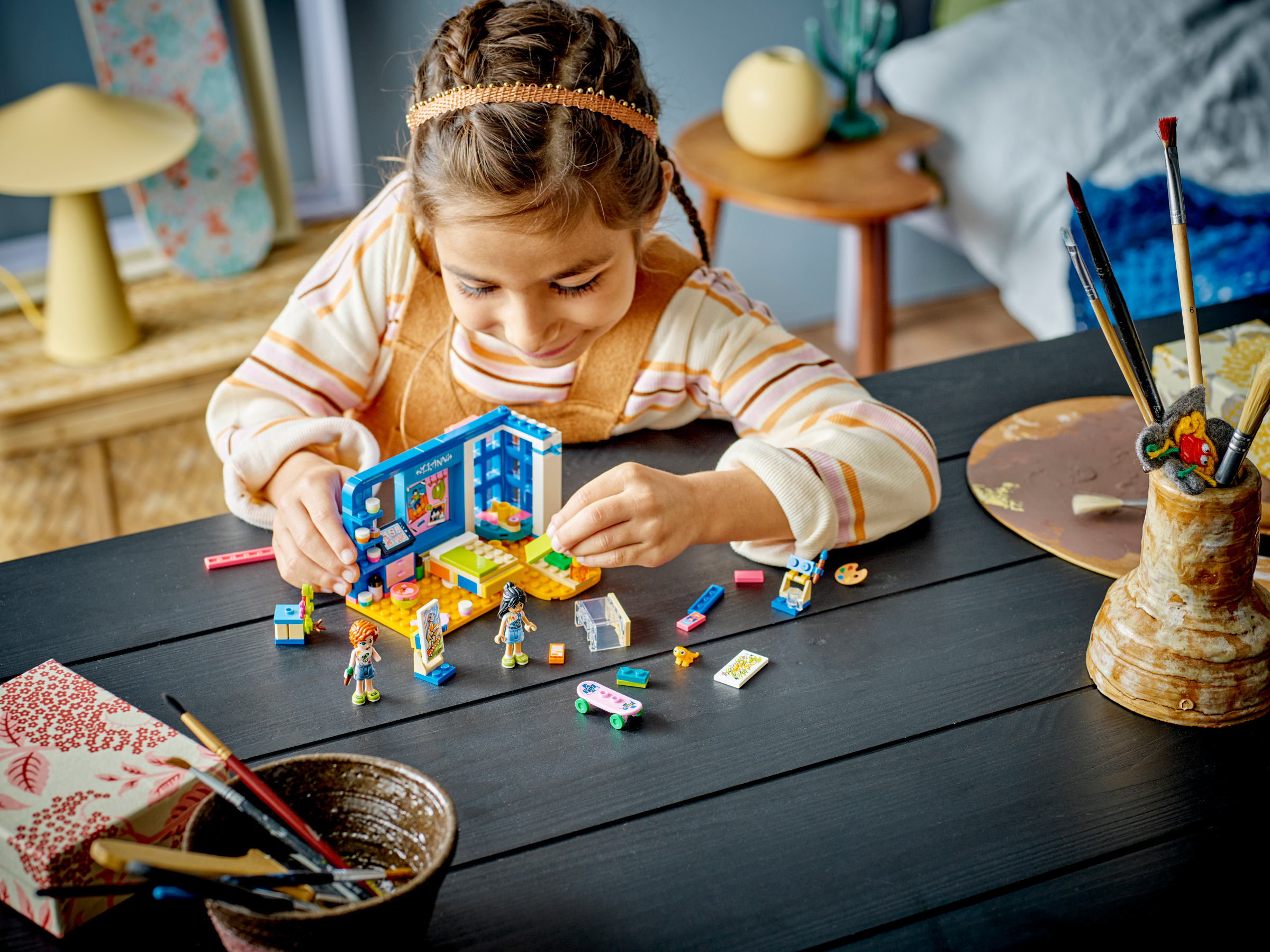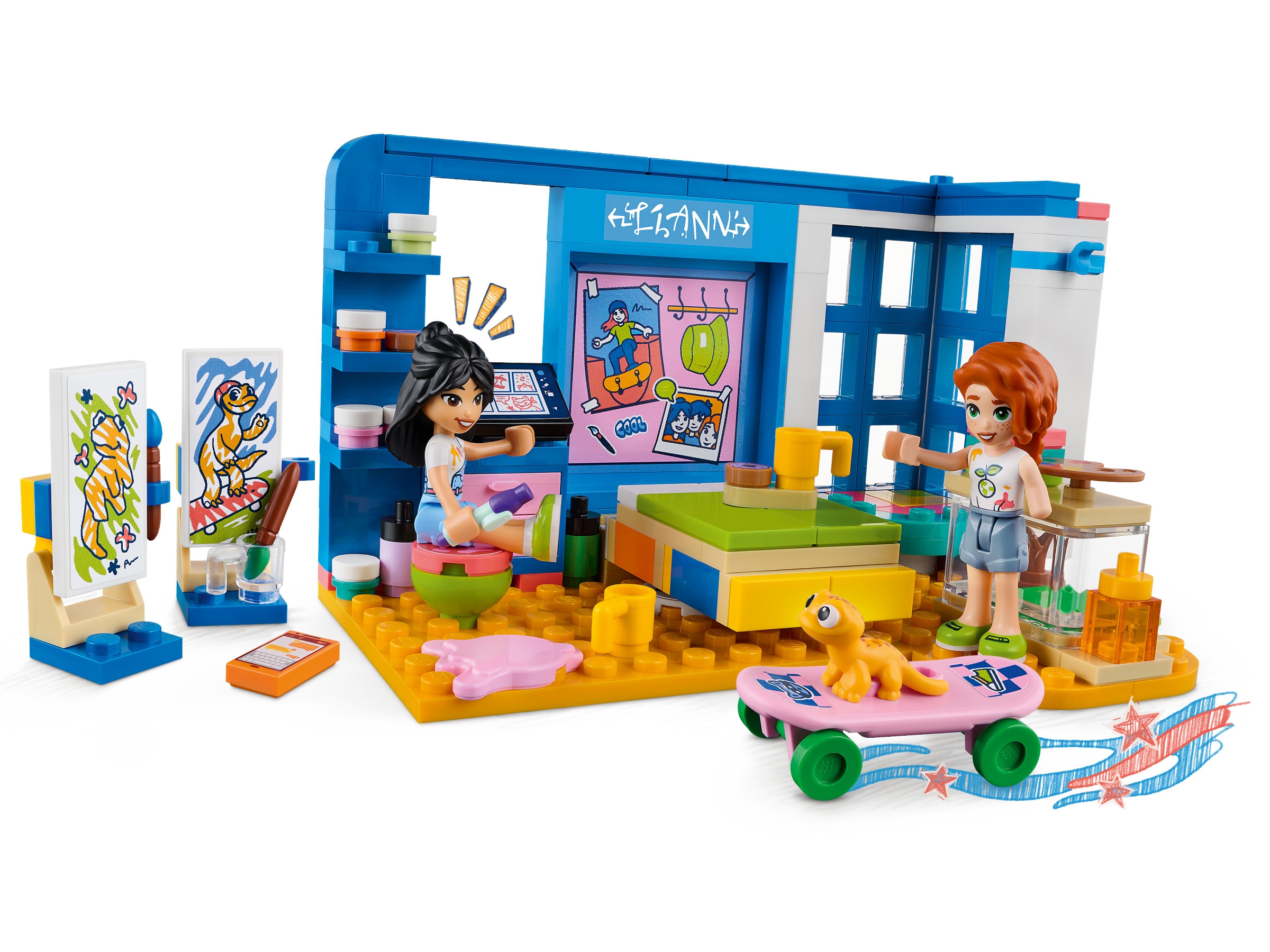 Art-loving kids aged 6 have lots to discover in this LEGO® Friends Liann’s Room (41739) building toy set with its art desk, window nook and hidden bed. They’ll love exploring the friendship between energetic Liann and easygoing Autumn. Imaginative play is easy as kids pretend to paint a picture of Liann’s pet gecko, Popcorn. The set has lots of accessories to inspire creativity with art studio materials including paint tubes, palettes and easels. There are also toy donuts, cups, comic books, askateboard, cell phone, pen and a terrarium for Popcorn the gecko.