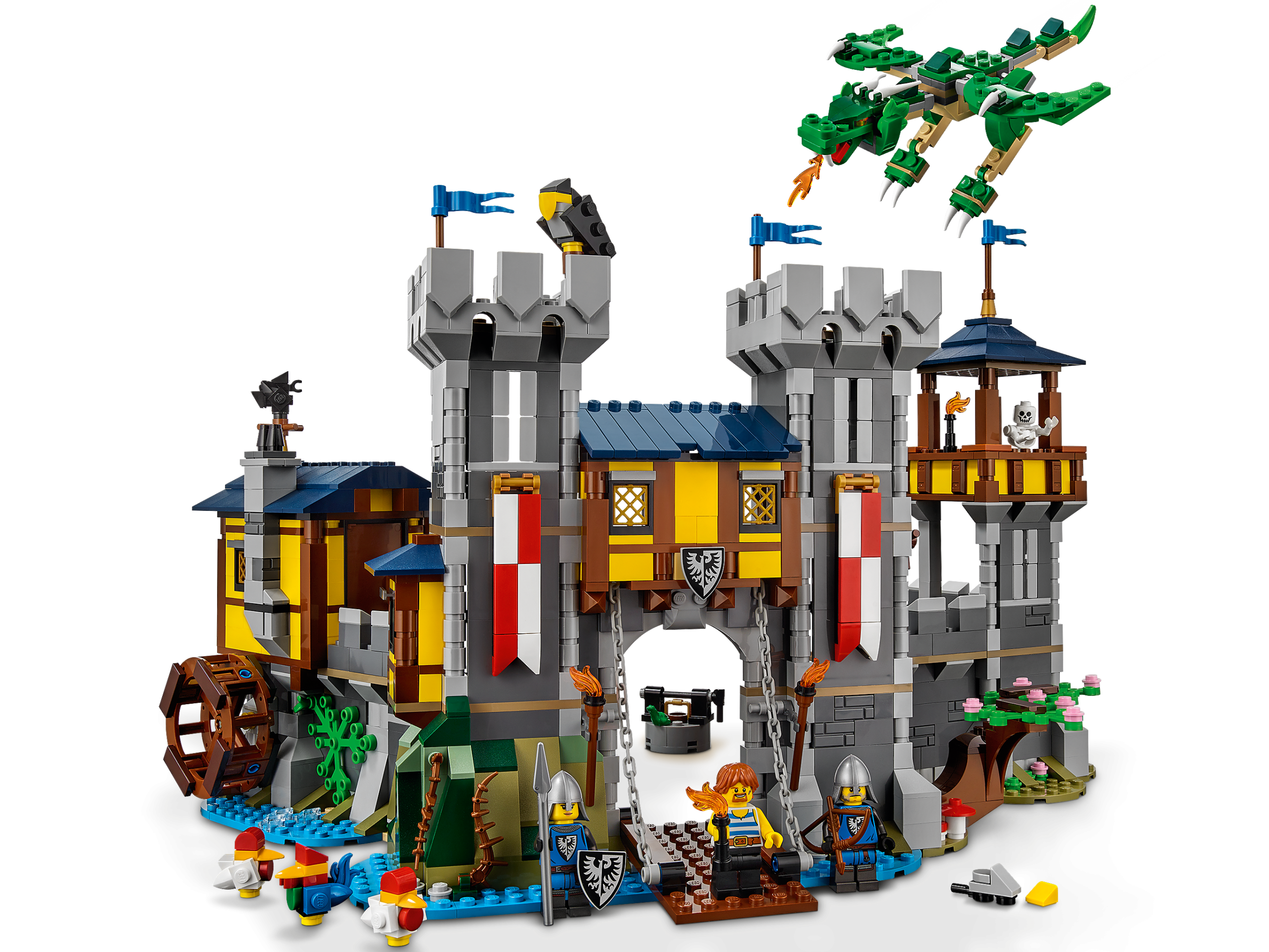 Kids will love taking a trip back in time with this brilliantly detailed LEGO® Creator 3in1 Medieval Castle (31120). It’s packed with all they need to create captivating stories – a 2-floored Castle toy with an opening gate, water mill, prison, king’s room, 3 minifigures, dragon toy, 3 chickens and a rat.
