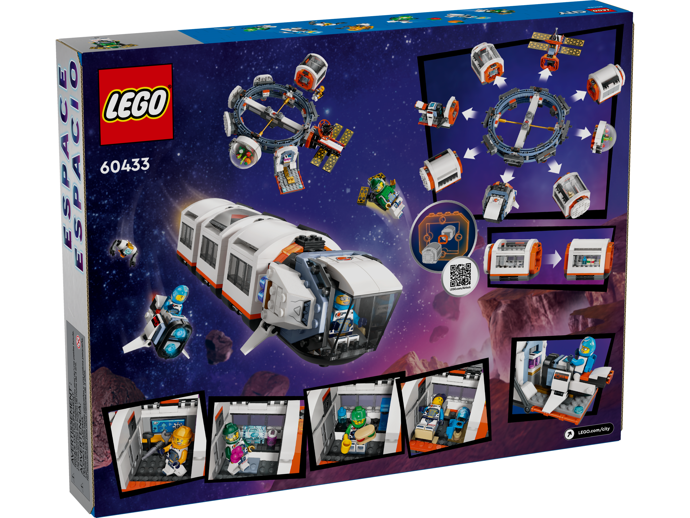 LEGO City space toys come with realistic vehicles, detailed structures and inspiring characters that merge fantasy and reality for creative play without limits. This set includes the special space air-lock system for connection to other compatible space-themed LEGO playsets (sold separately).