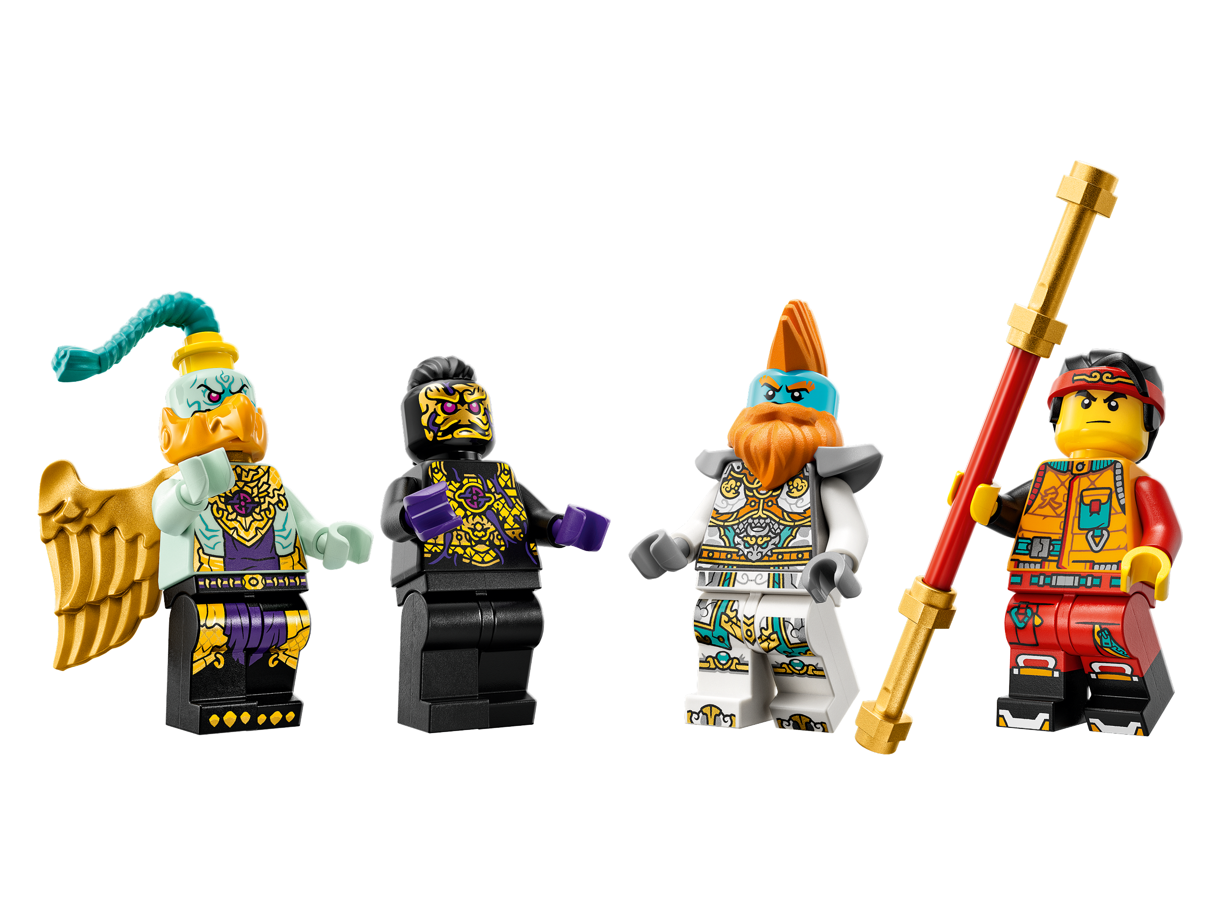 The set features 4 minifigures: Monkie Kid, Sandy Power-up, Ink Demon and The Golden-Winged Eagle, plus a Mo LEGO cat figure, and encourages exciting hot-air balloon play. Your child can also have an intuitive building adventure with the LEGO Builder app. They can use it to zoom in and rotate models in 3D, track progress and save sets as they build.