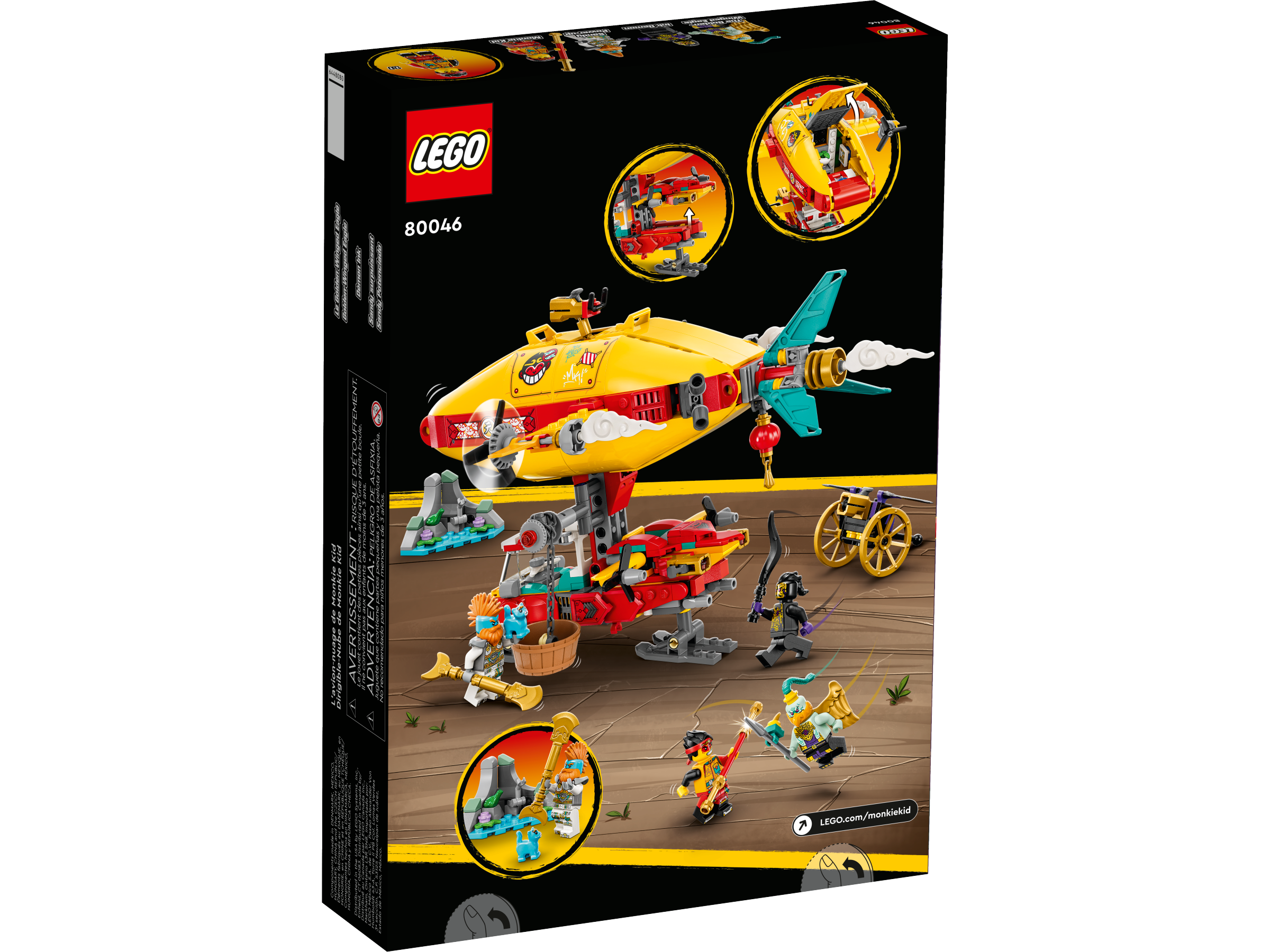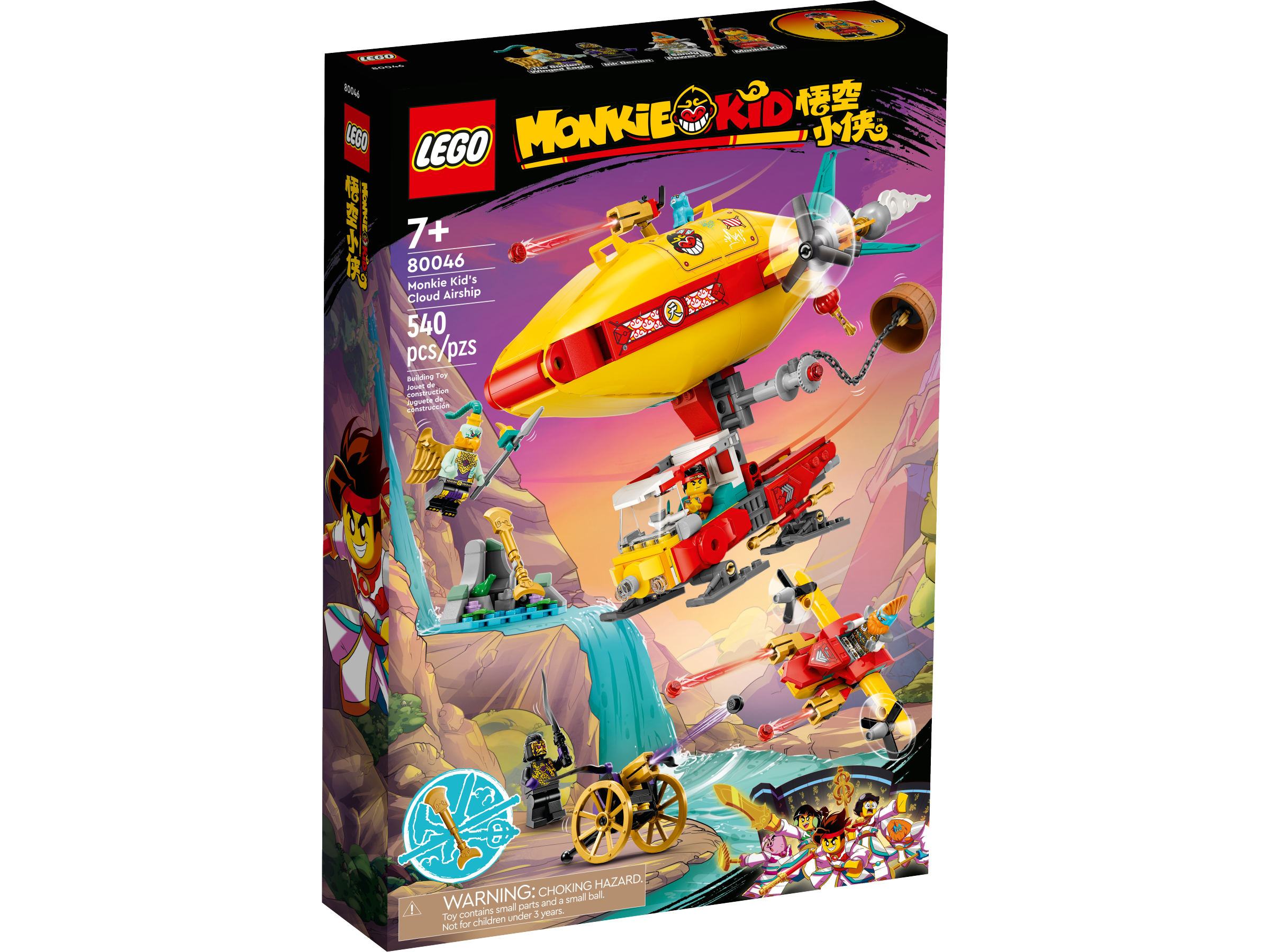 Impress kids aged 7 who have a passion for hot-air balloon vehicles with this LEGO® Monkie Kid™: Monkie Kid’s Cloud Airship (80046) set. It features a buildable toy airship with attached cockpit, shooter, adjustable wings, storage space and a working winch, plus a detachable flyer with 2 shooters. There are also 2 smaller builds: a crossbow for the villain and a small mountain pond with the ancestral weapon.