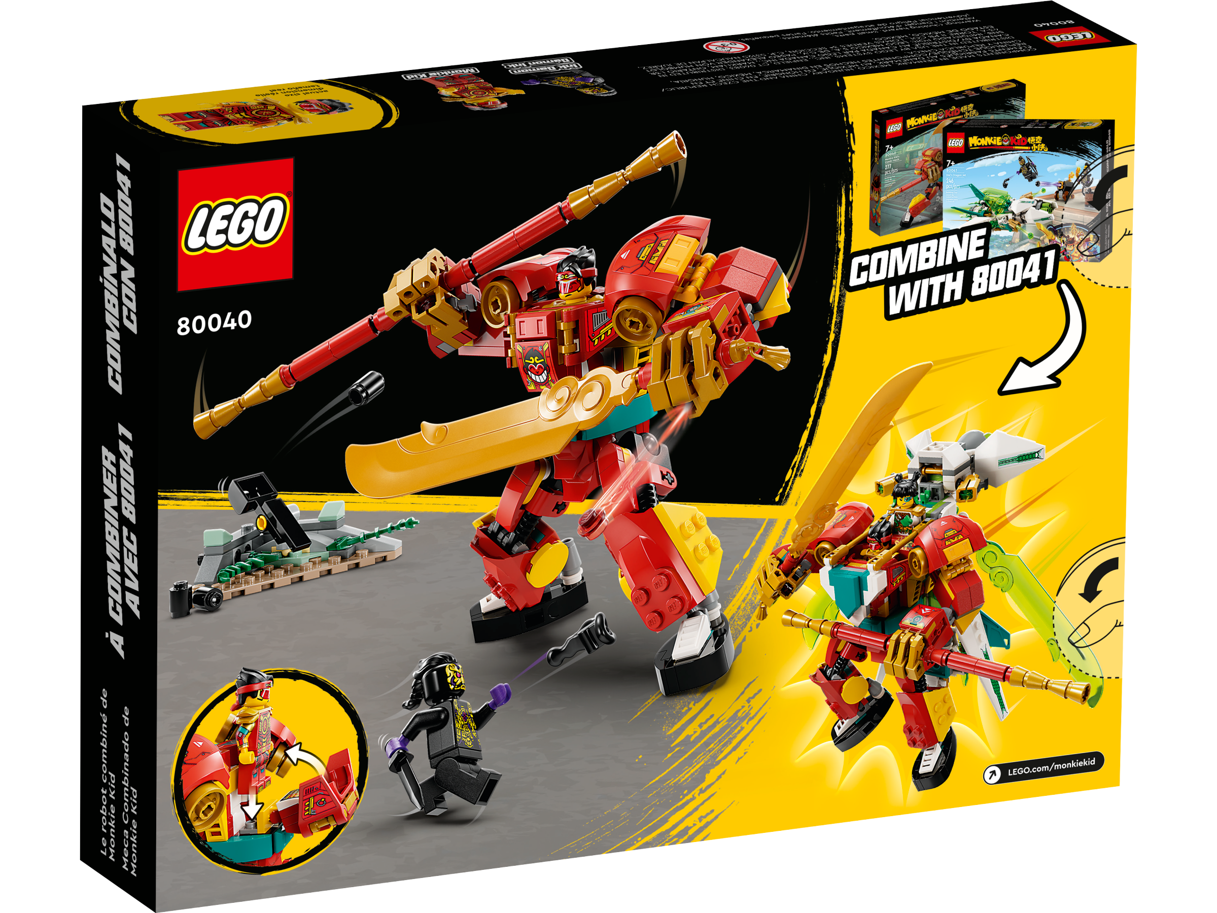 Kids can enjoy an easy and intuitive building adventure with the LEGO Builder app. Here they can zoom in and rotate models in 3D, save sets and track their progress. Combine this set with Mei’s Dragon Jet 80041 (sold separately) to boost the combi mech in unexpected ways.