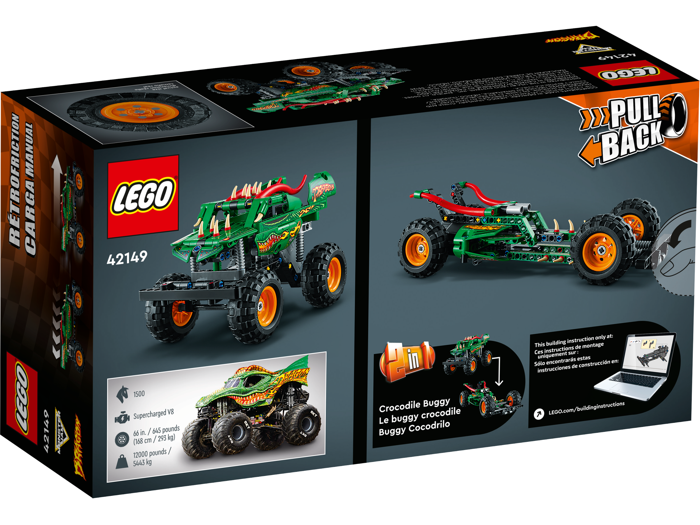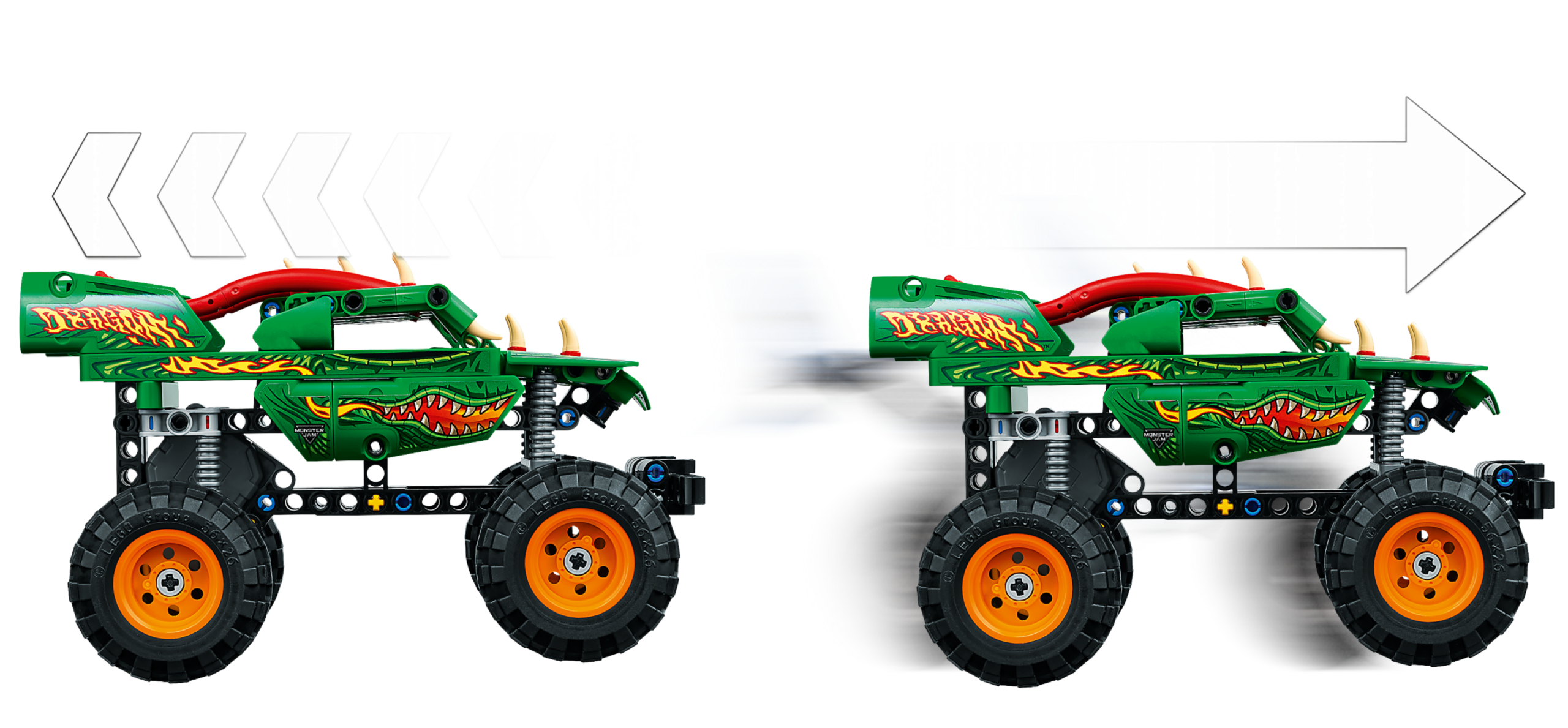 Kids aged 7 who love Monster Jam™ have lots to discover with this LEGO® Technic™ Monster Jam Dragon™ (42149) pull-back truck toy. It comes with awesome dragon details like spikes and horns. With realistic graphics and colors, this toy truck model lets kids recreate favorite scenes from the Monster Jam arena.