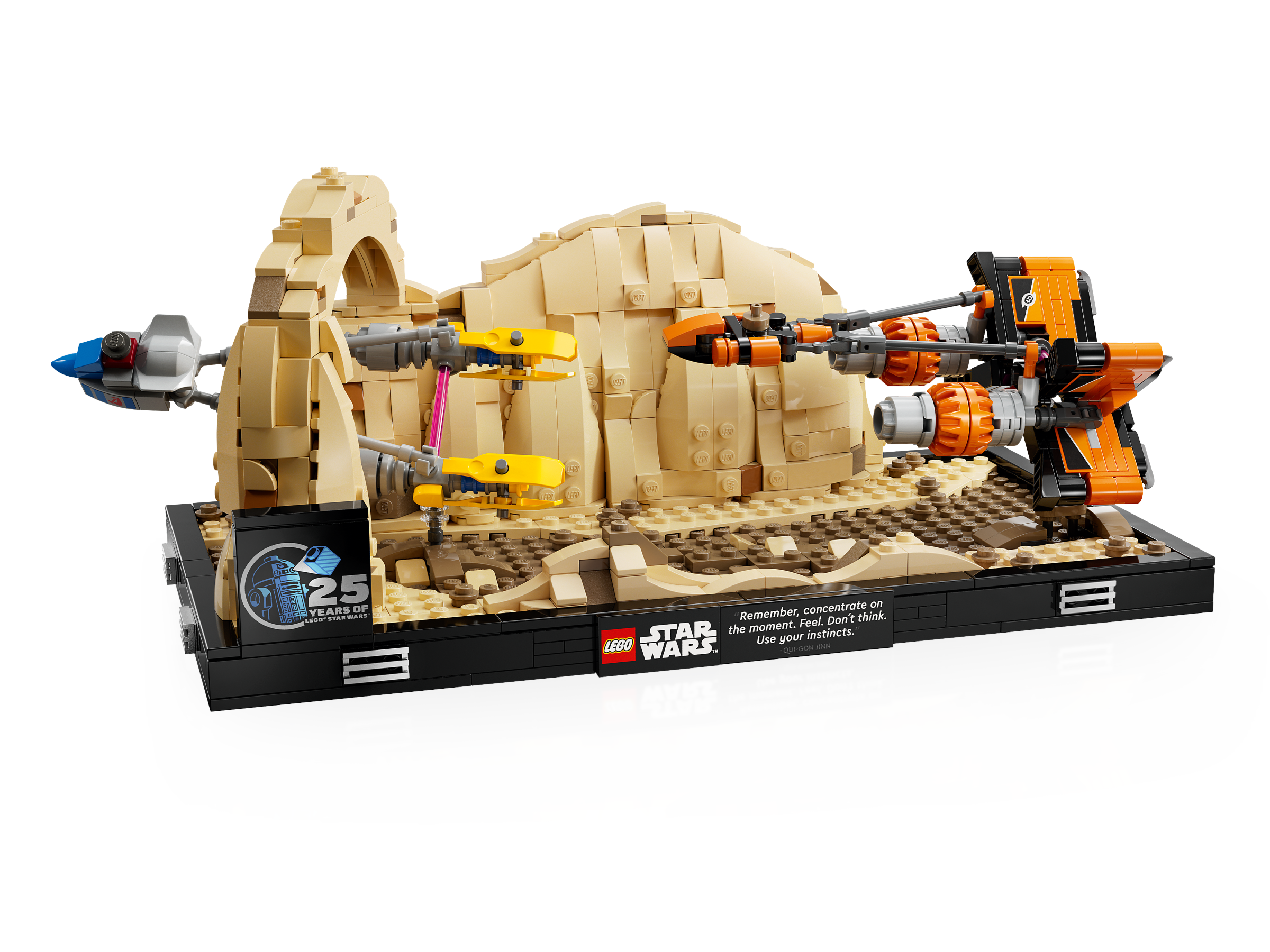 Freeze-frame a moment from the thrilling Mos Espa Podrace with this LEGO® Star Wars™ Diorama (75380) buildable model kit for adults. This collectible building set invites you to channel the force, as Anakin Skywalker did in the Star Wars: The Phantom Menace adventure, to create a LEGO brick-built snapshot of his Podracer powering through Arch Canyon in hot pursuit of his racing rival Sebulba.