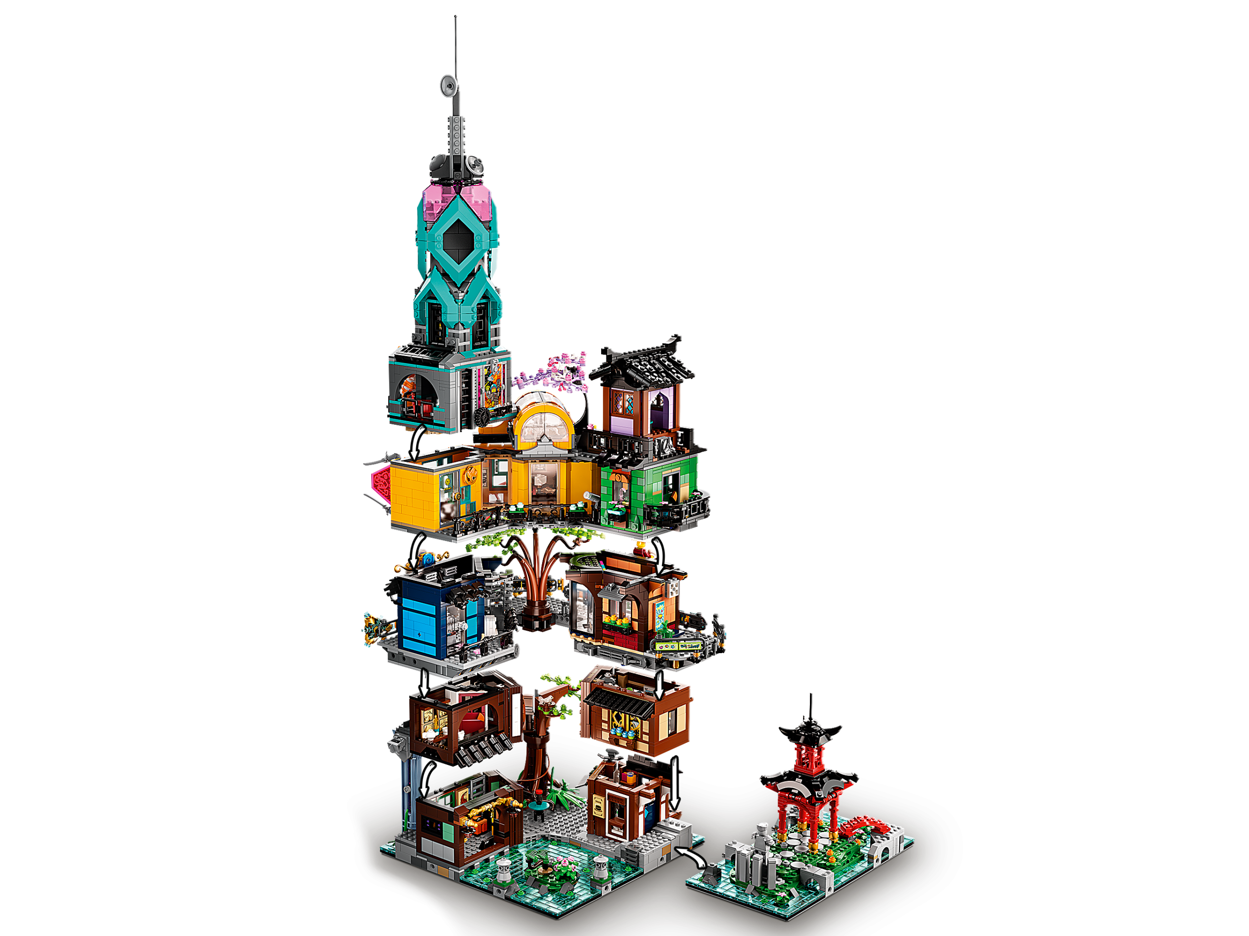 Rediscover cherished memories and favorite ninja heroes with this NINJAGO® City Gardens (71741) set for play and display. Celebrate the 10th anniversary of the world of NINJAGO by enjoying a rewarding and fun-filled building task.