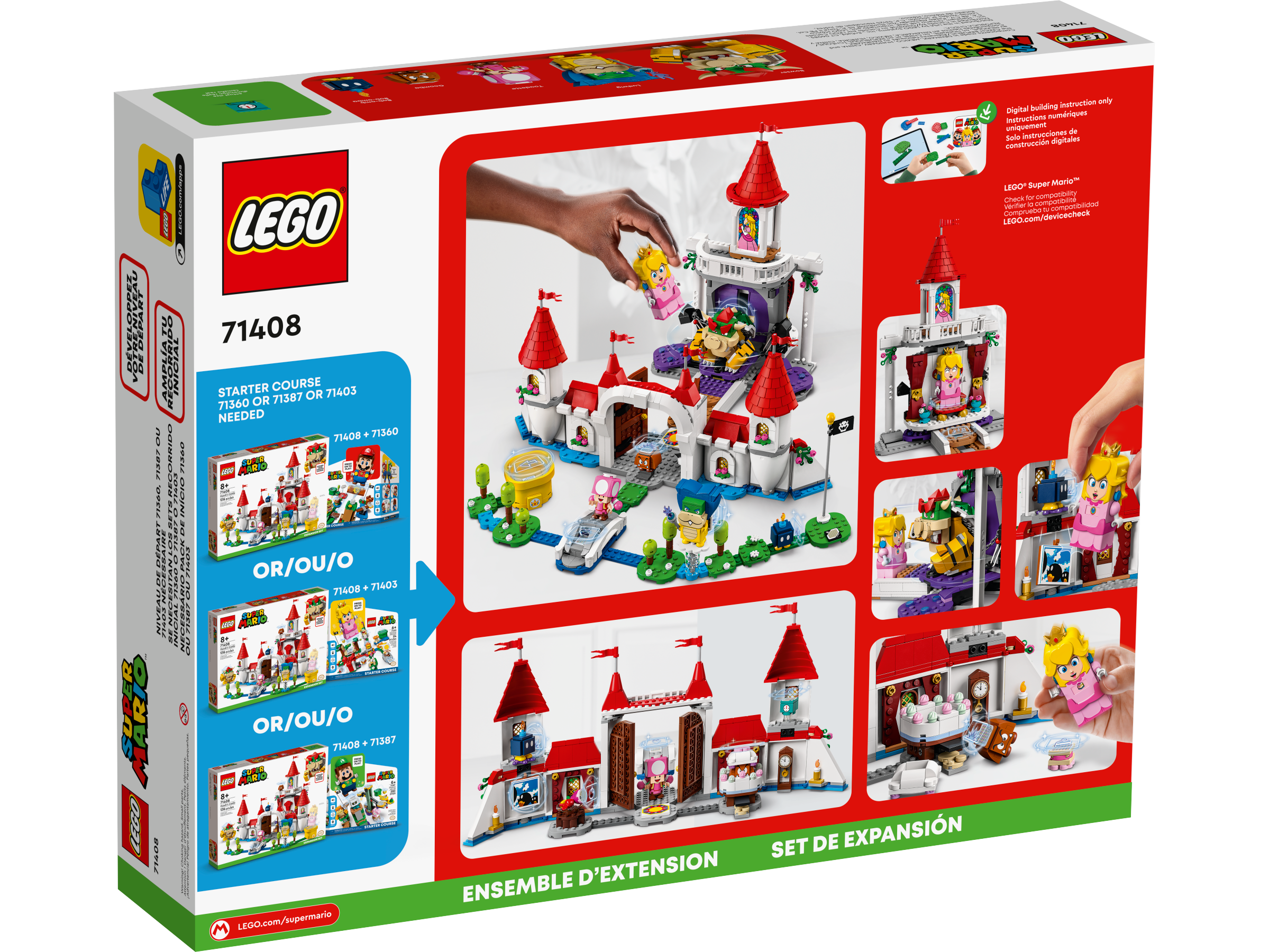 Let kids add an iconic location to their LEGO® Super Mario™ universe with the Peach’s Castle Expansion Set (71408). There is so much for players to explore and many ways to earn digital coins with their interactive LEGO® Mario™, LEGO® Luigi™ or LEGO® Peach™ figures (not included). It features a throne room with a spinning wall to reveal Bowser, Peach stained-glass window, a Bob-omb painting with an Action Tag, cake with a Goomba hiding inside, Special Pipe: Peach’s Castle, Time Block, ‘broken’ bridge, fruit bowl with a purple fruit and more. (Note: the 71360, 71387 or 71403 Starter Course is required for interactive play.)