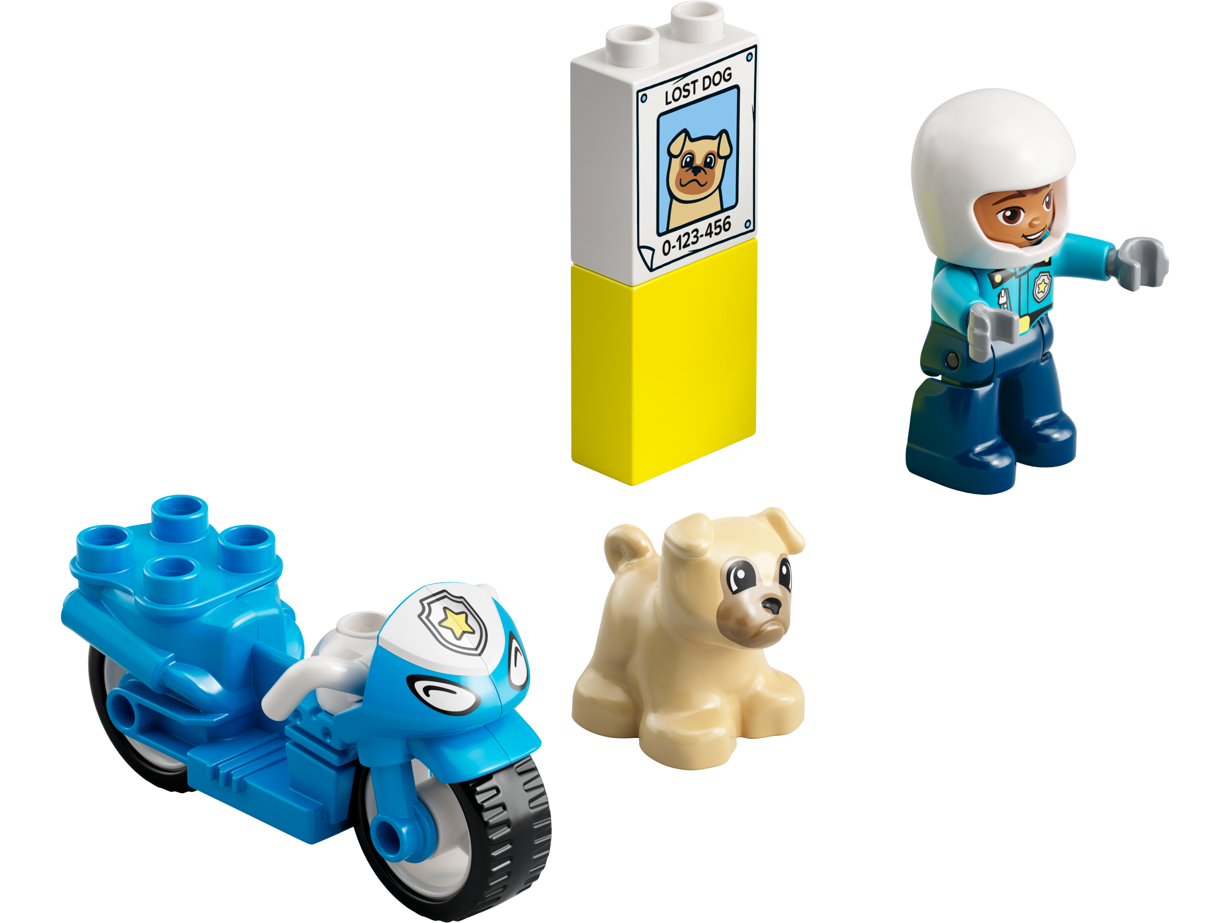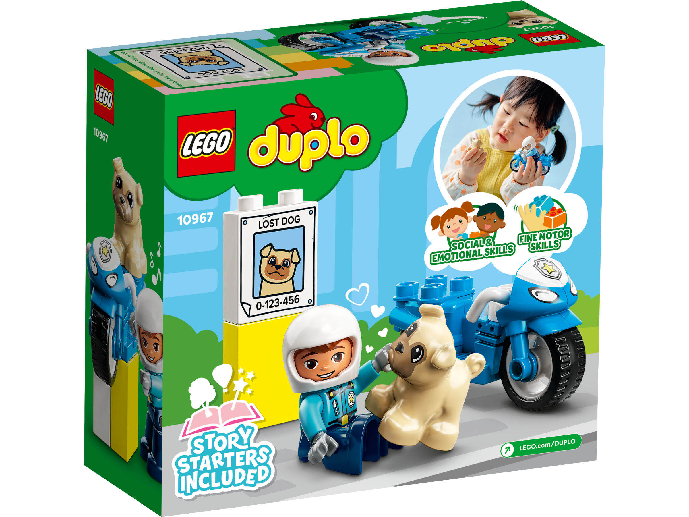 LEGO® DUPLO® Rescue Police Motorcycle (10967) provides hands-on developmental play that will delight any preschooler aged 2 with an interest in police work, cool motorcycles and caring for animals.