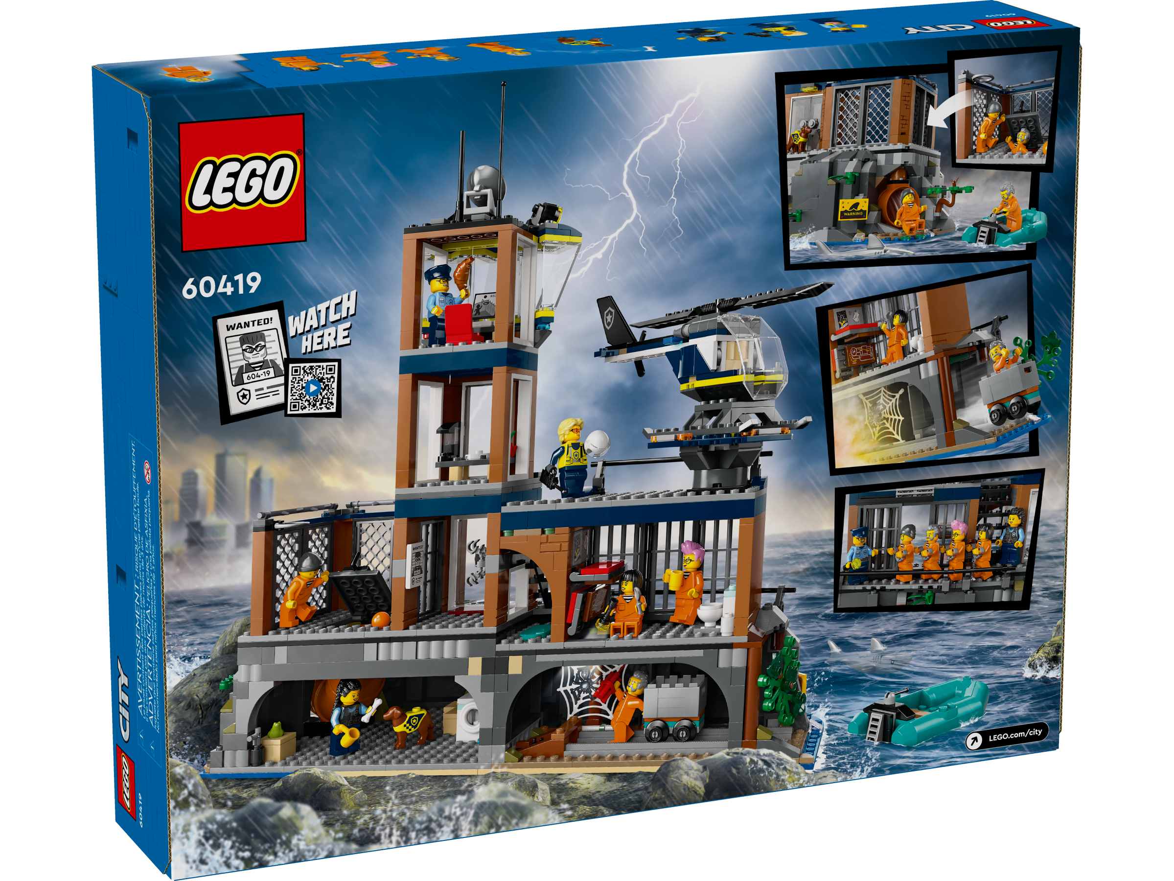 The LEGO® City Police Prison Island (60419) is home to some of the city’s most notorious crooks, but they have other plans! Action-packed adventures await with this awesome toy playset, featuring a cliffside prison bursting with features and functions. It also includes a helicopter, police boat, dinghy, 3 officer and 4 prisoner minifigures, plus police dog and shark figures.