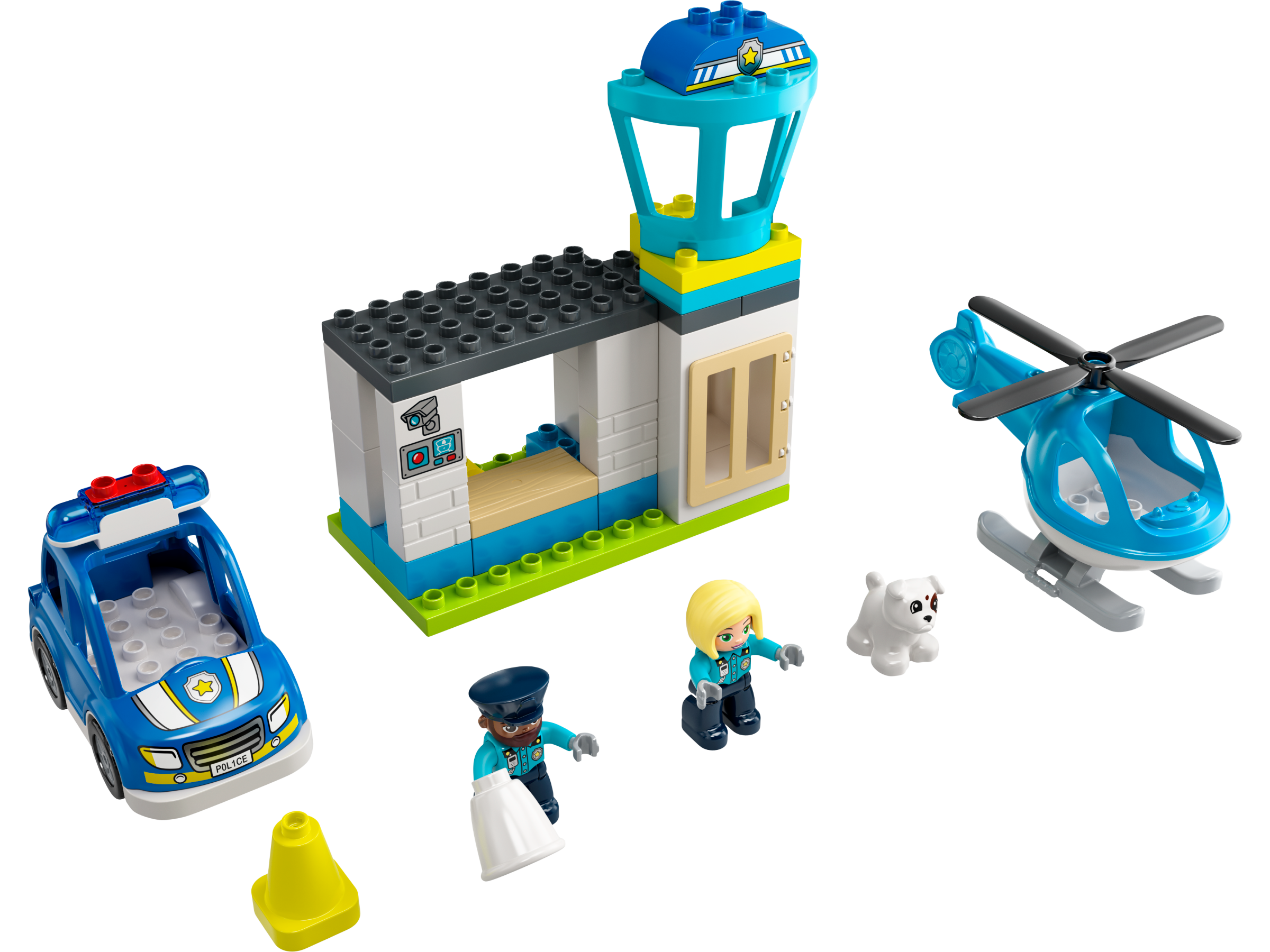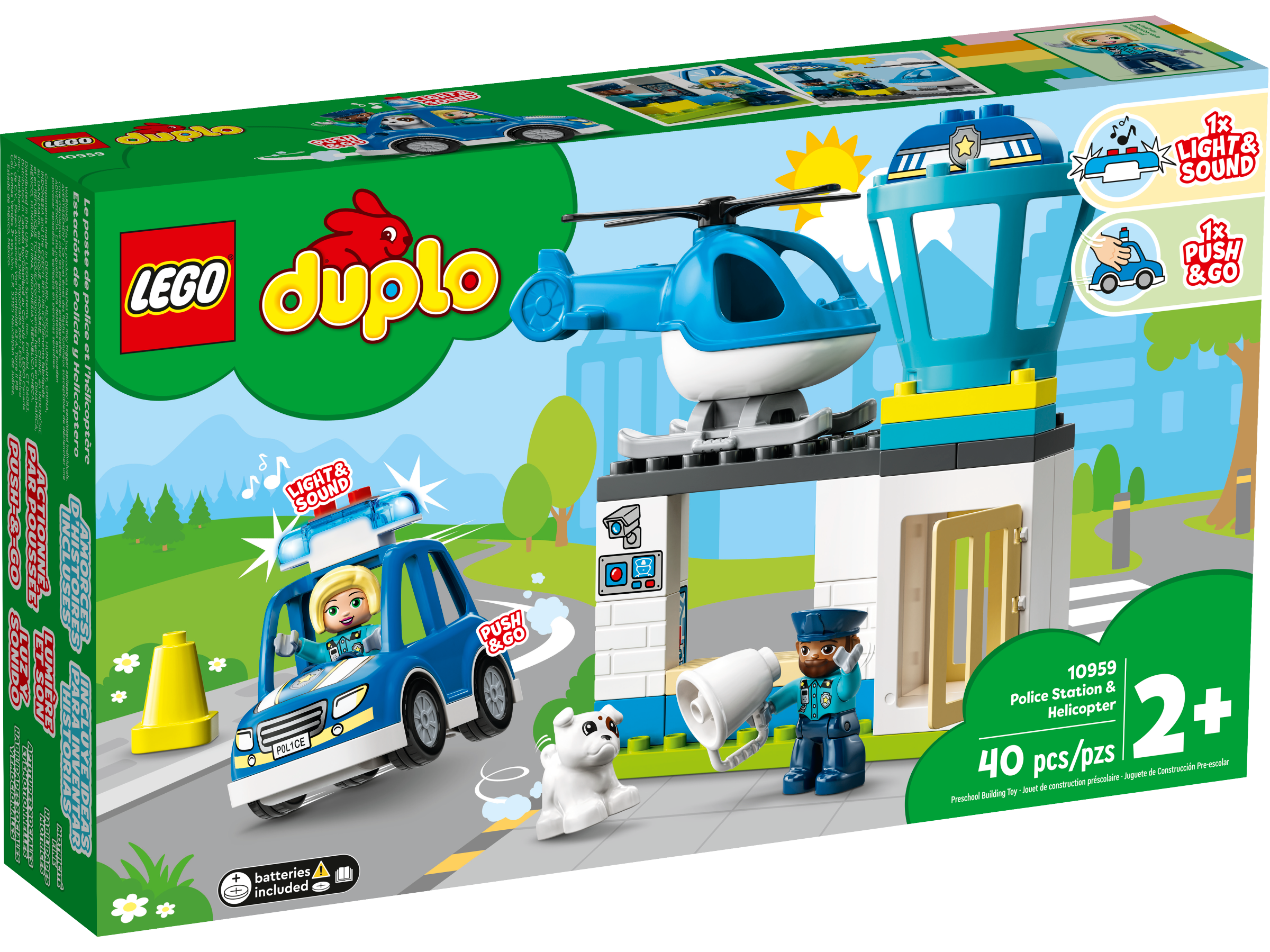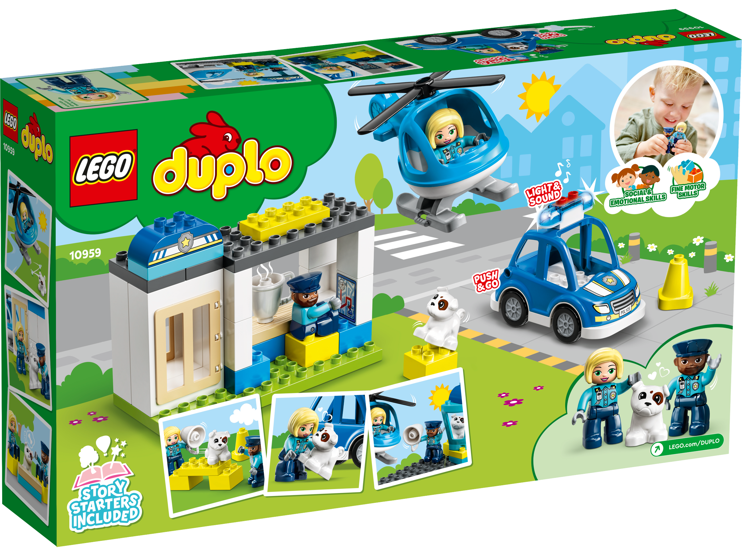 LEGO® DUPLO® Rescue Police Station & Helicopter (10959) is a toddler-friendly police playset featuring characters and vehicles to inspire kids aged 2 .