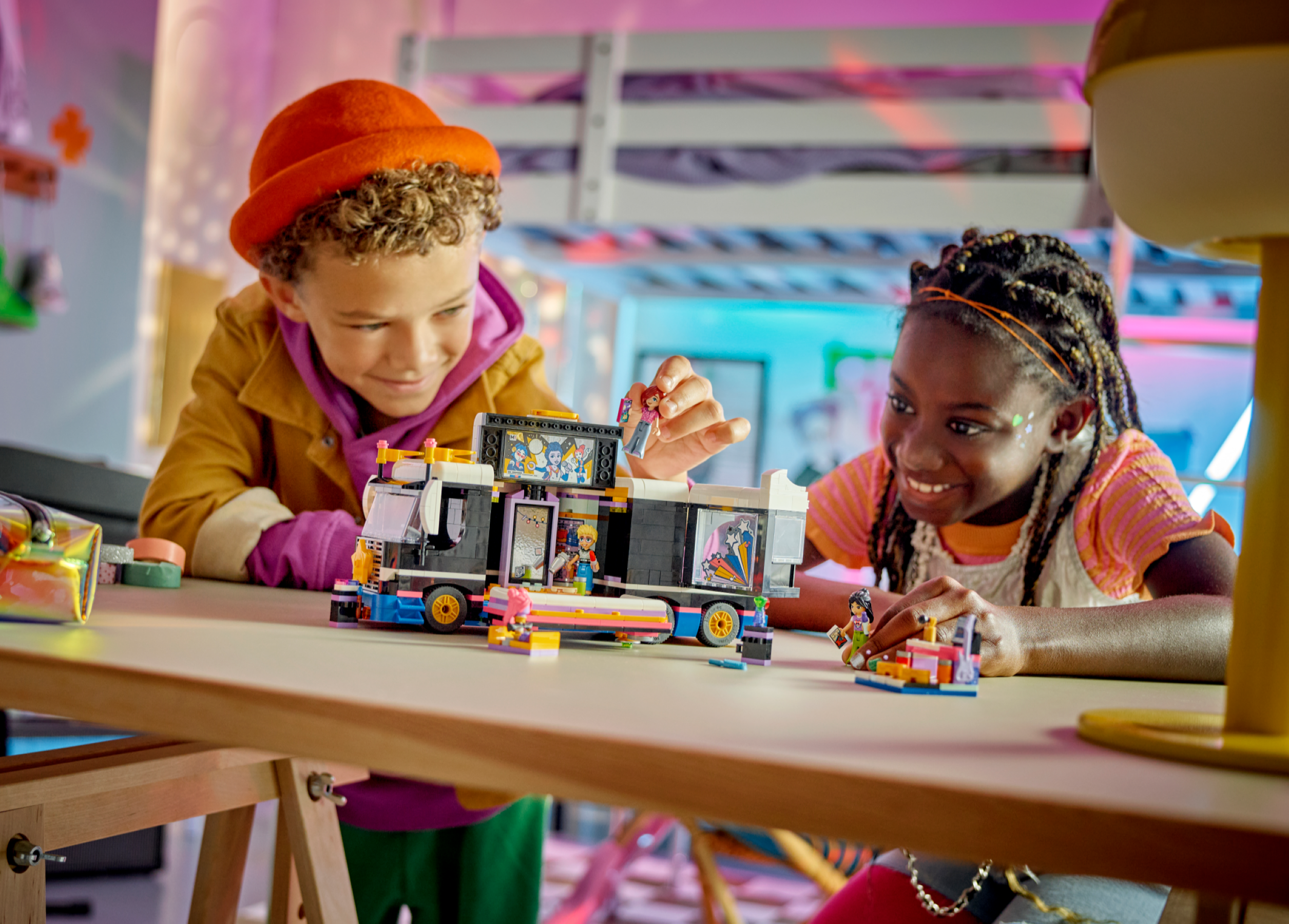 Bring role play to life with this LEGO® Friends Pop Star Music Tour Bus toy playset (42619) for girls, boys and kids aged 8 . The set includes a buildable bus and backstage area with accessories and 4 LEGO Friends characters.