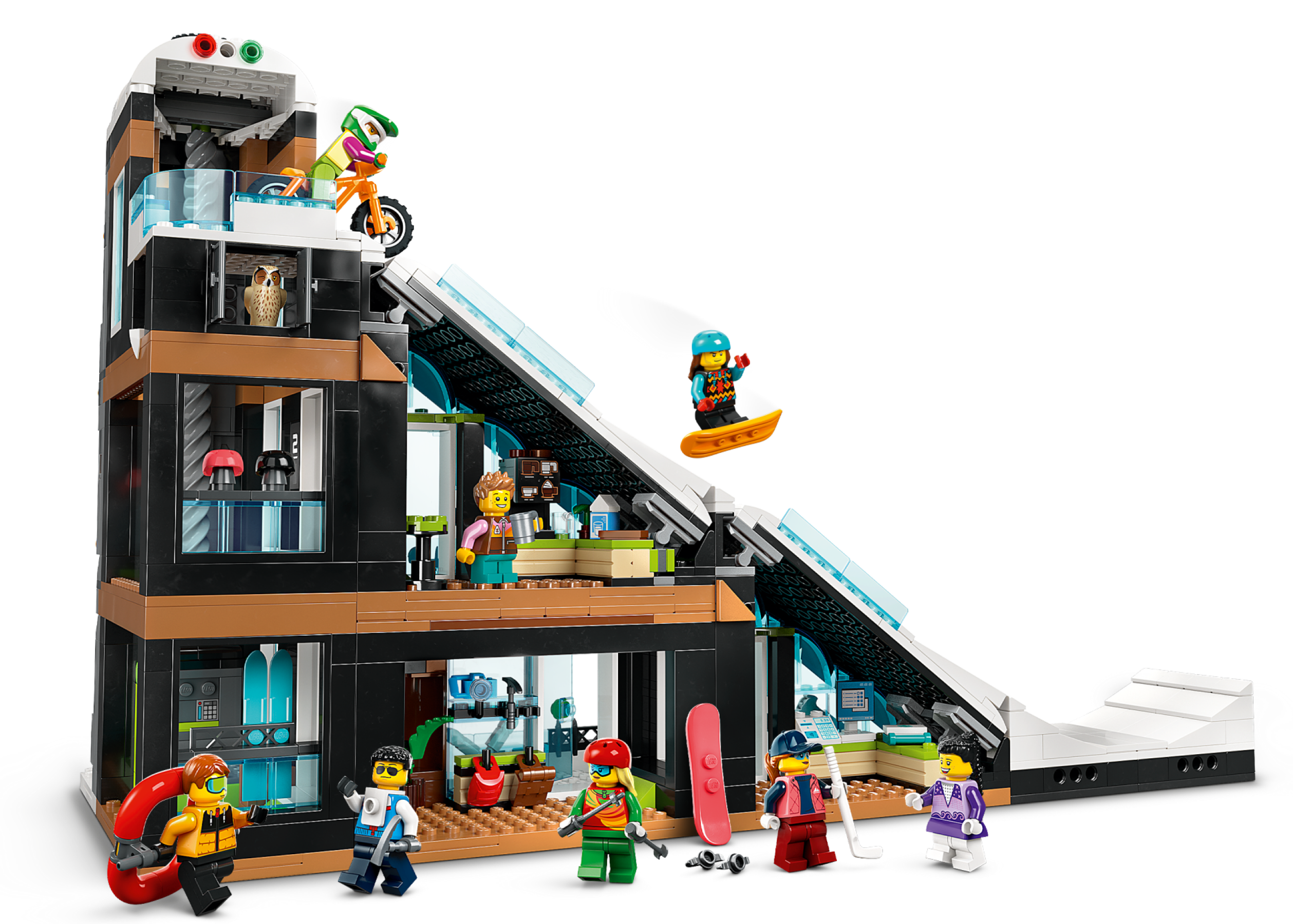 Bring the thrill of the slopes home with this LEGO® City Ski and Climbing Center (60366) playset. The 3-level building houses a winter-sports store, café and a working elevator that delivers skiers to the top of a piste. The center also features a climbing wall and an outdoor area for fun winter activities. Just add the 8 minifigures, squirrel and owl figures and the buildable snowman for endless winter fun.