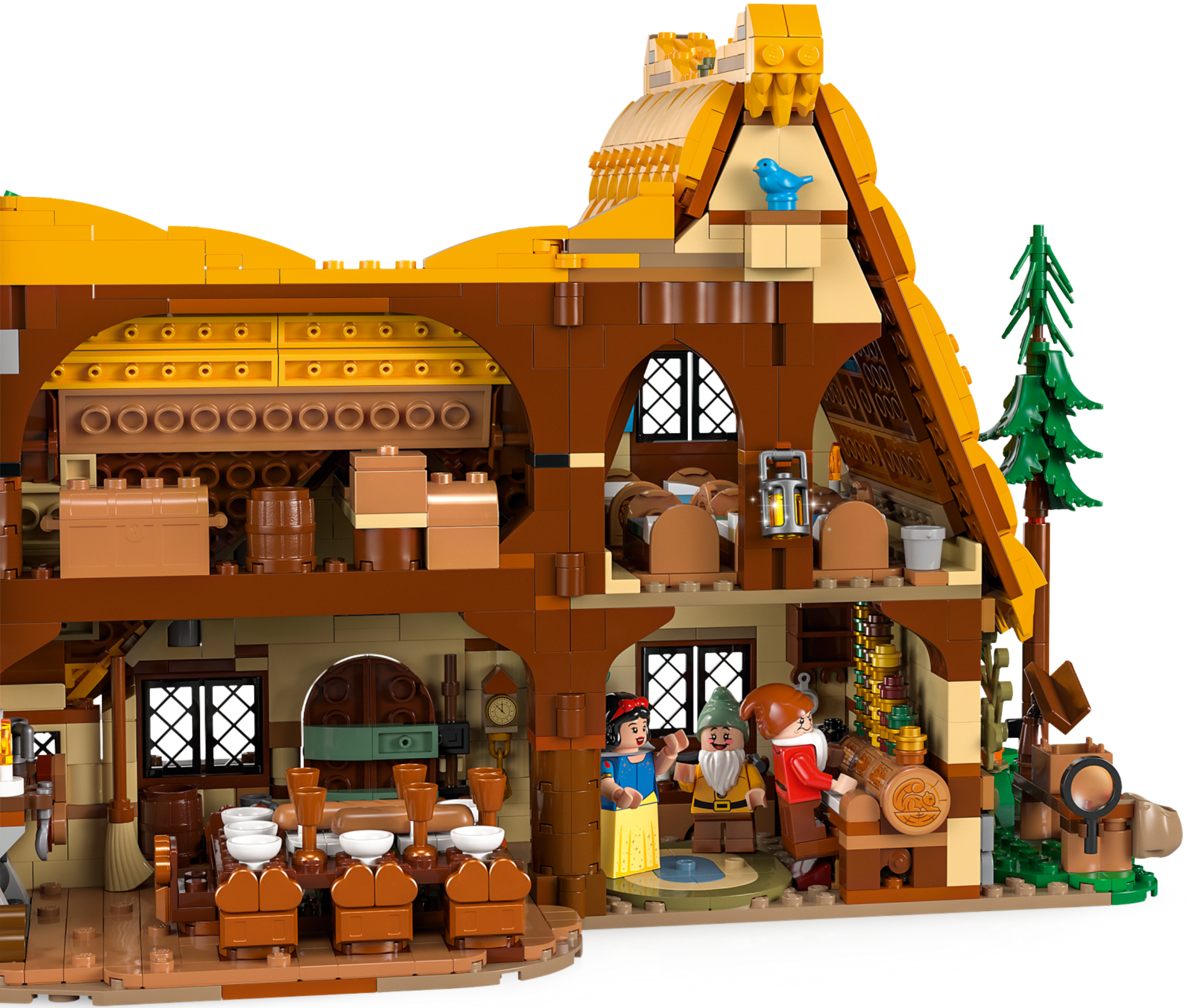 Share your passion for a classic Disney film with this detailed LEGO® ǀ Disney Snow White and the Seven Dwarfs’ Cottage (43242) display model. The collectible building kit for adults features an opening cottage with sleeping, dining and music areas, plus a kitchen with a light brick (batteries for the light brick are included) in the hearth to add a glow. One side of the roof can also be removed for easier access, and there’s a small buildable wishing well and forest scene with a glass coffin. The set includes 10 well-known Snow White and the Seven Dwarfs characters: Snow White, the Evil Queen in Disguise, the Prince, Doc, Dopey, Bashful, Grumpy, Happy, Sleepy and Sneezy, plus 6 LEGO ǀ Disney animal figures.