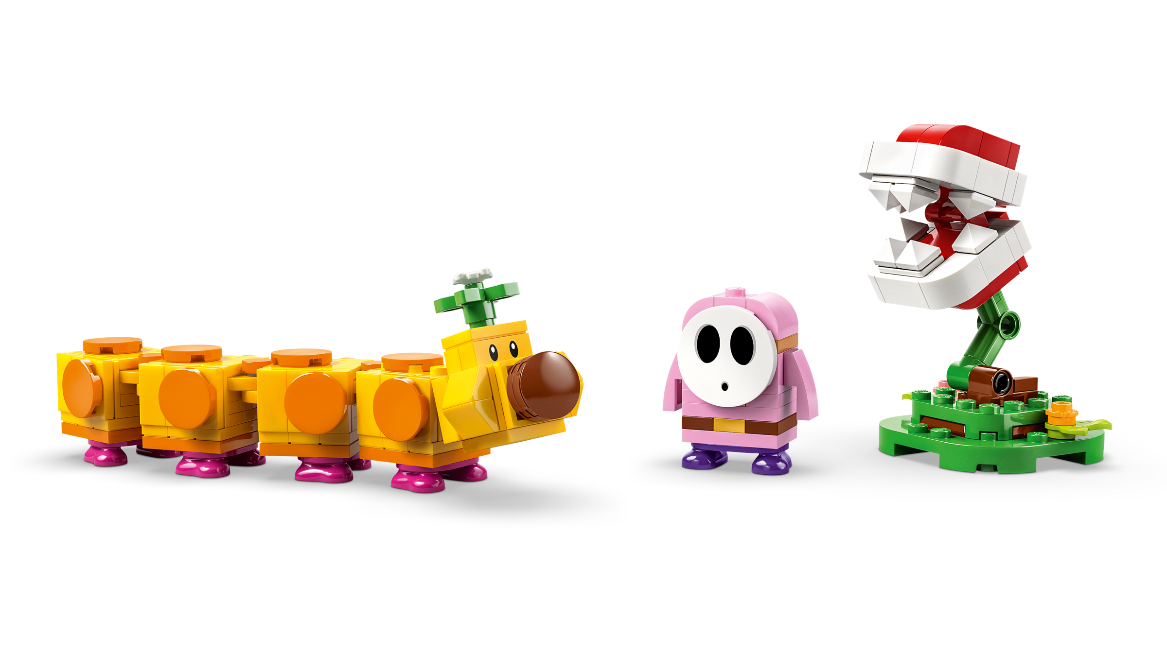 Add a LEGO® Mario™, LEGO® Luigi™ or LEGO® Peach™ figure (from sets 71439, 71440 or 71441 – sold separately) to this toy playset for interactive play. Earn digital coins for riding the Wiggler, toppling the Pink Shy Guy, crossing the poison swamp on the raft, and more.