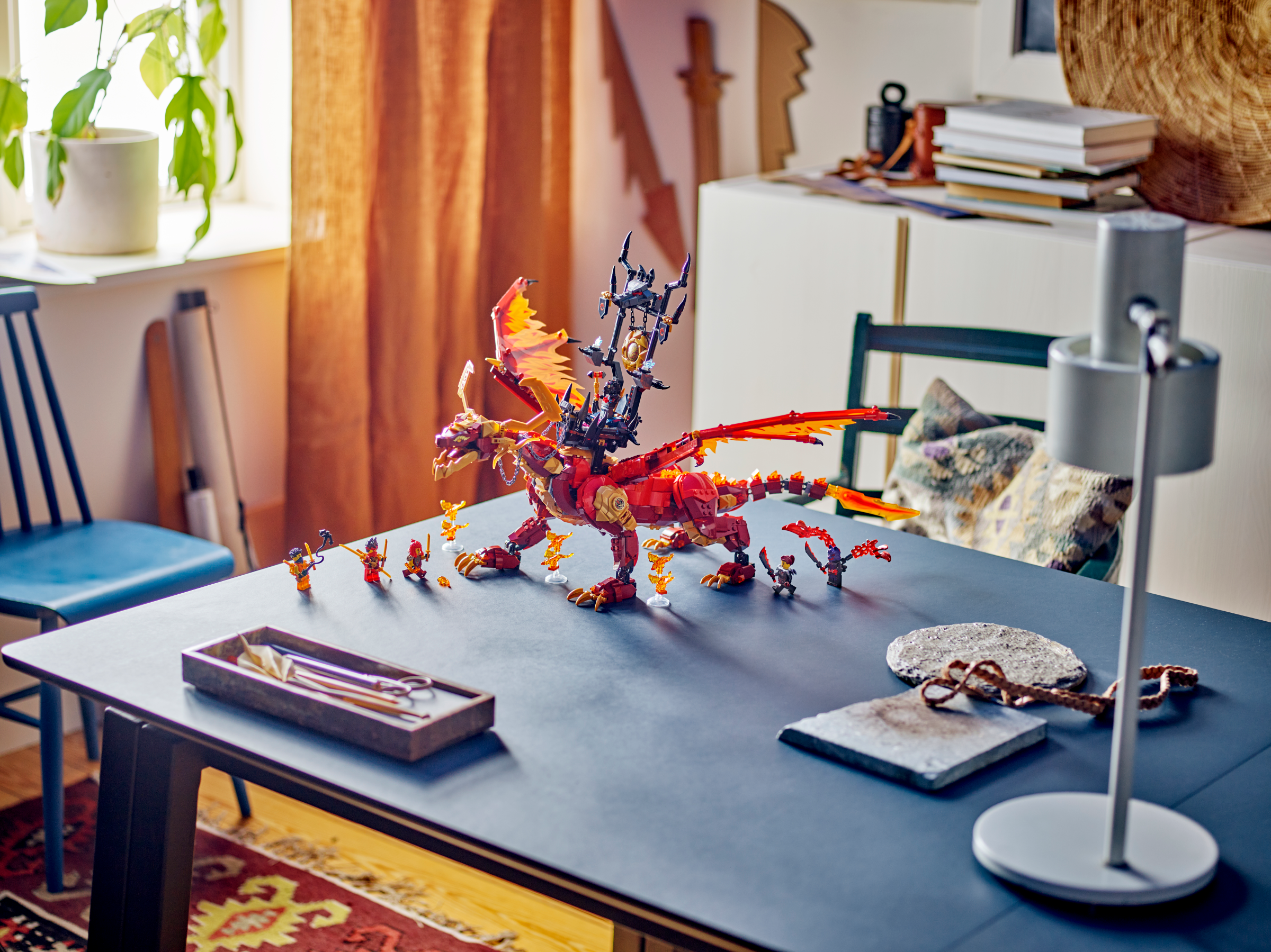Kids aged 12 recreate soaring aerial adventures from season 2 of the NINJAGO® Dragons Rising TV show with this awesome Source Dragon of Motion (71822) adventure toy. This is the biggest-ever LEGO® dragon toy, and has posable legs, tail, hips, jaw, head, neck and large wings. It comes with a saddle-throne on its back and 6 smaller spirit dragons.