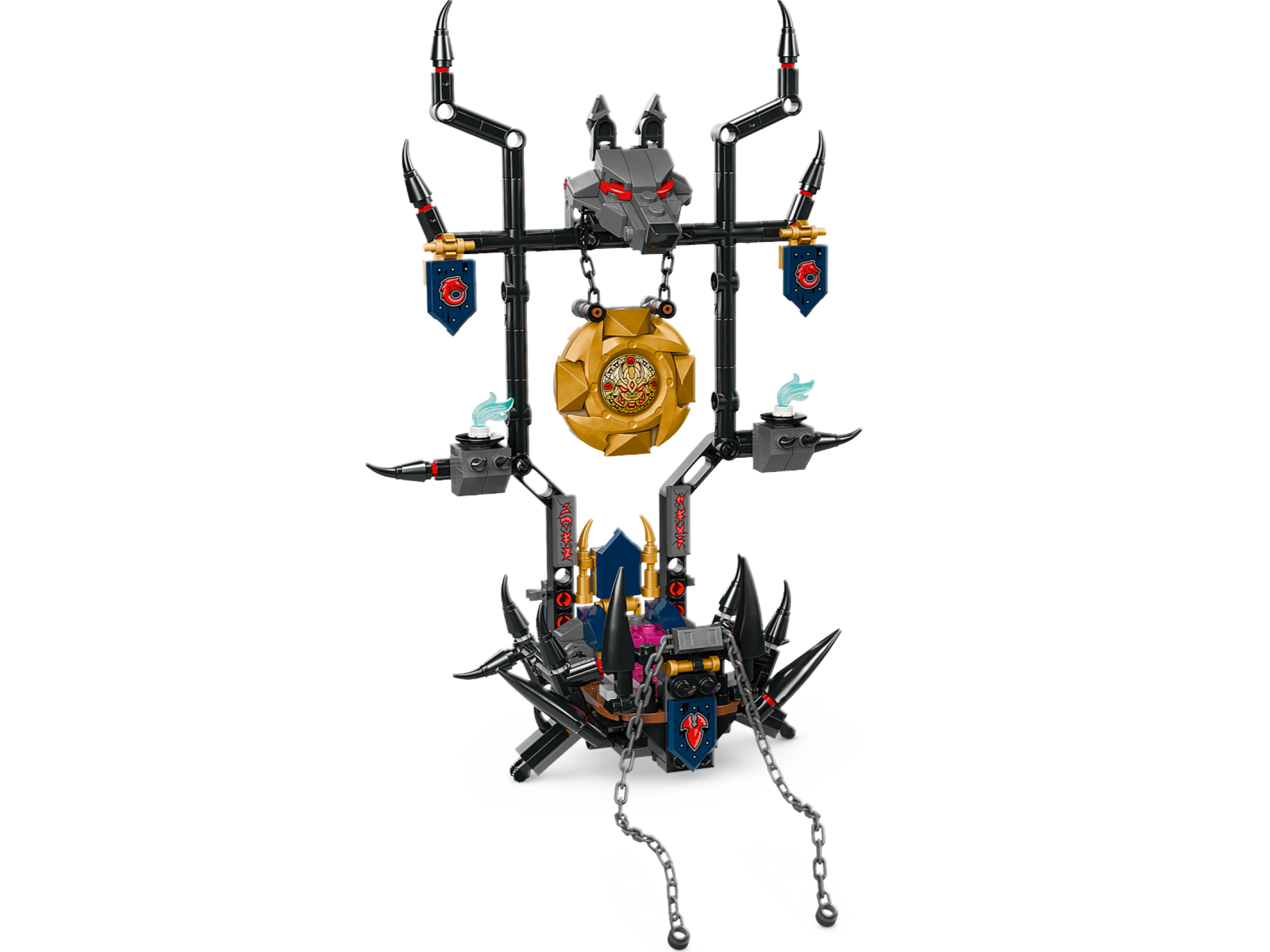 This dragon toy set includes 6 minifigures for kids to play out battles: ninja warriors Kai, Wyldfyre and Arin (with cool sword and weapon accessories) and the villainous trio of Lord Ras, Jordana and a Wolf Mask Warrior, who each have their own weapon accessories.