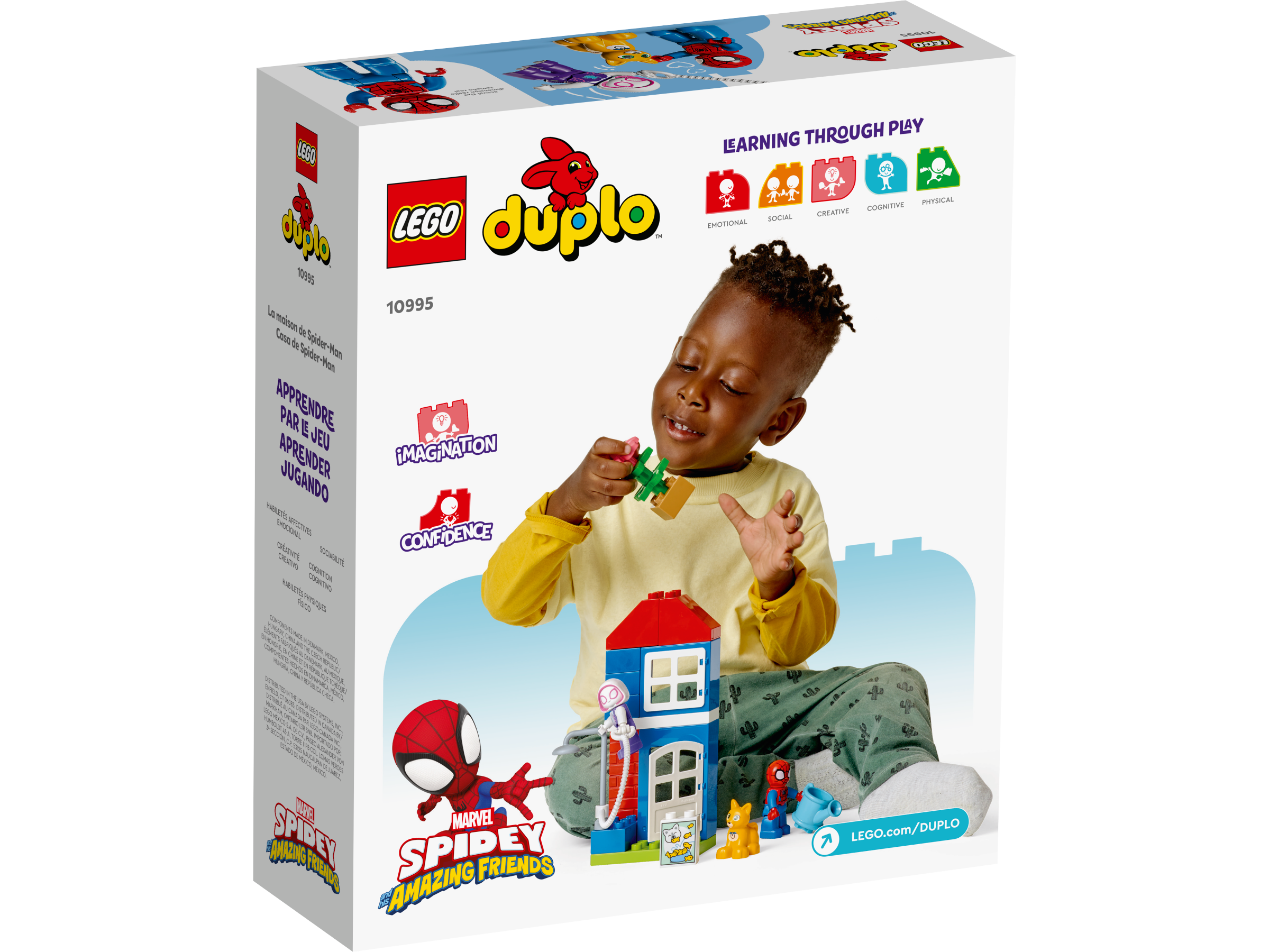 Super Heroes aged 2 and up swing into action as they role-play their favorite web-slinging characters in LEGO® DUPLO® Marvel Spider-Man’s House (10995). Inspired by the Disney TV series, kids create scenes from the show with this Spidey gift as they spin a web to save the cat, give the plant a drink with the toy watering can, then make the plant grow.