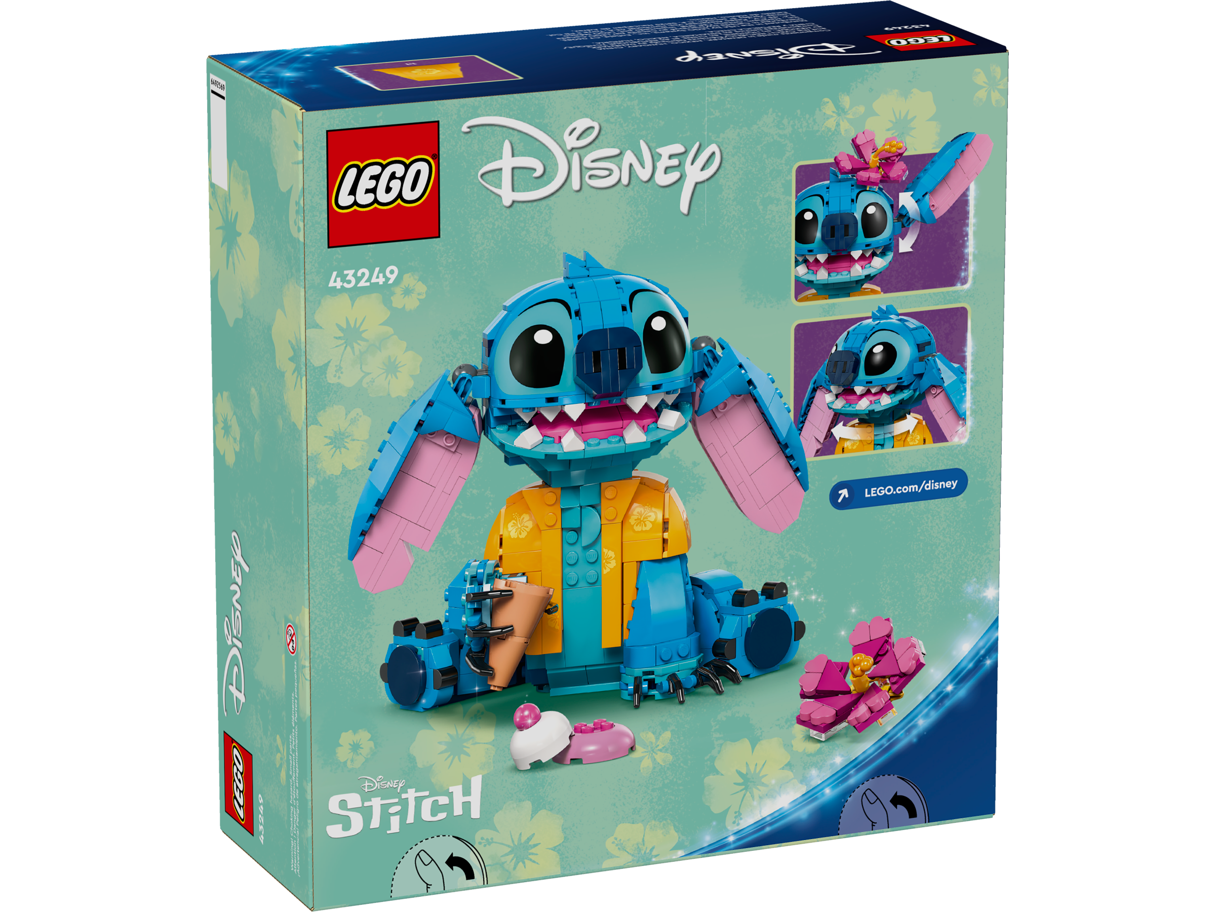 Appeal to older kids and Lilo and Stitch fans aged 9 with this LEGO® ǀ Disney Stitch (43249) buildable play-and-display set, featuring a Stitch character. The incorrigible extraterrestrial from the hit Disney movie, dressed in a Hawaiian shirt, has movable ears and a turning head, a buildable ice-cream cone that the character can hold and a buildable flower that can be added or removed.