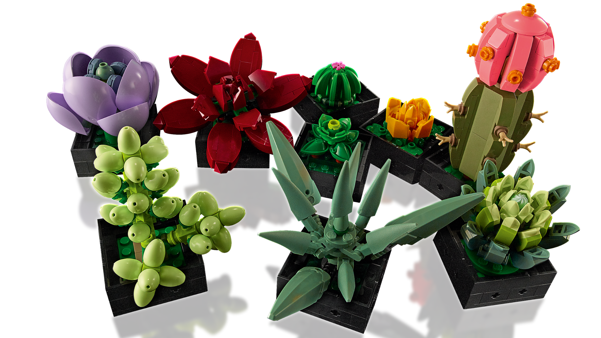 Succulents are a popular way to introduce plants into the home and enhance your decor. Now you can enjoy a mindful building project as you create an elegant plant display for your living space with this LEGO® Succulents (10309) building kit for adults. Take your time crafting all the details of the 9 different succulents – each inspired by a real-life variety. Then show off your creativity with the ultimate low-maintenance plant display.