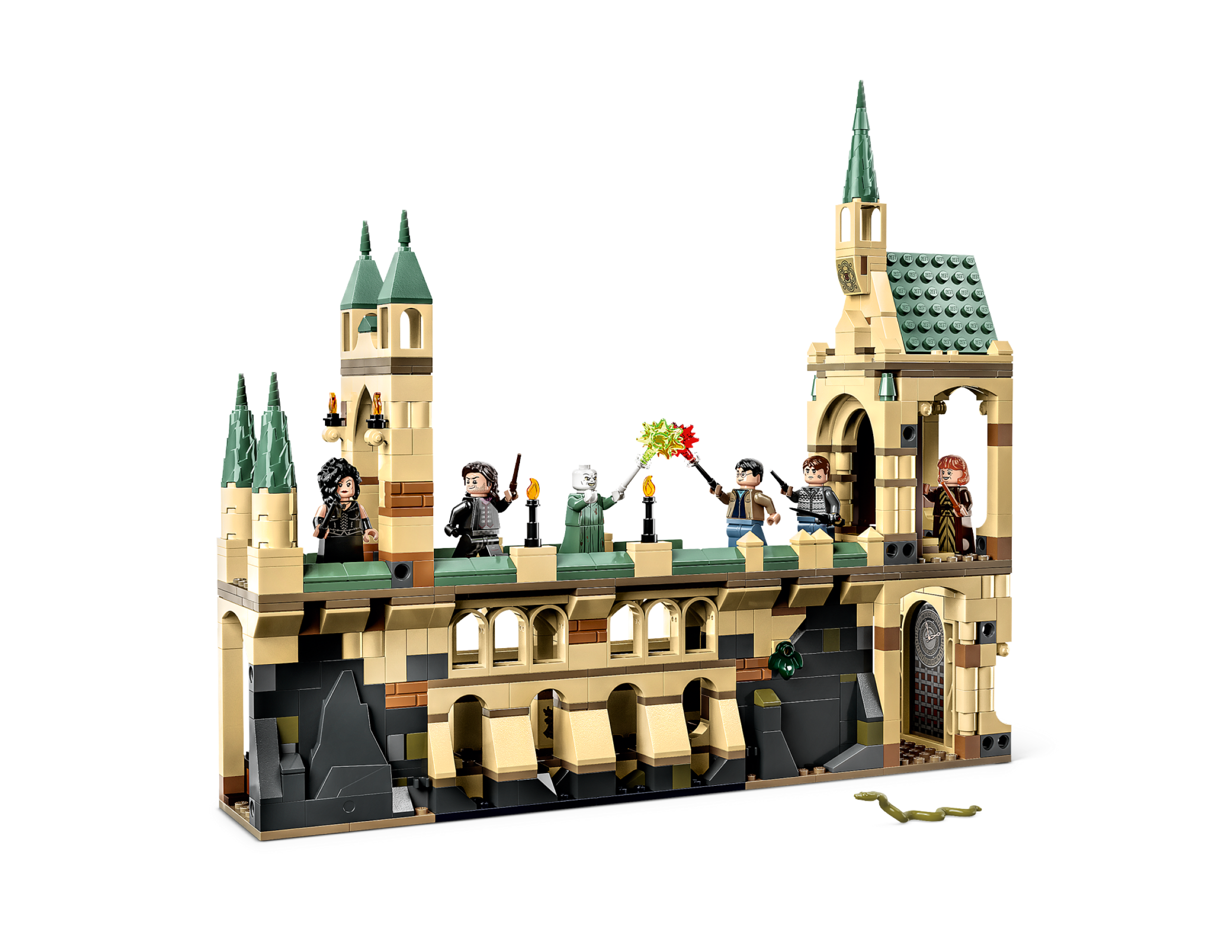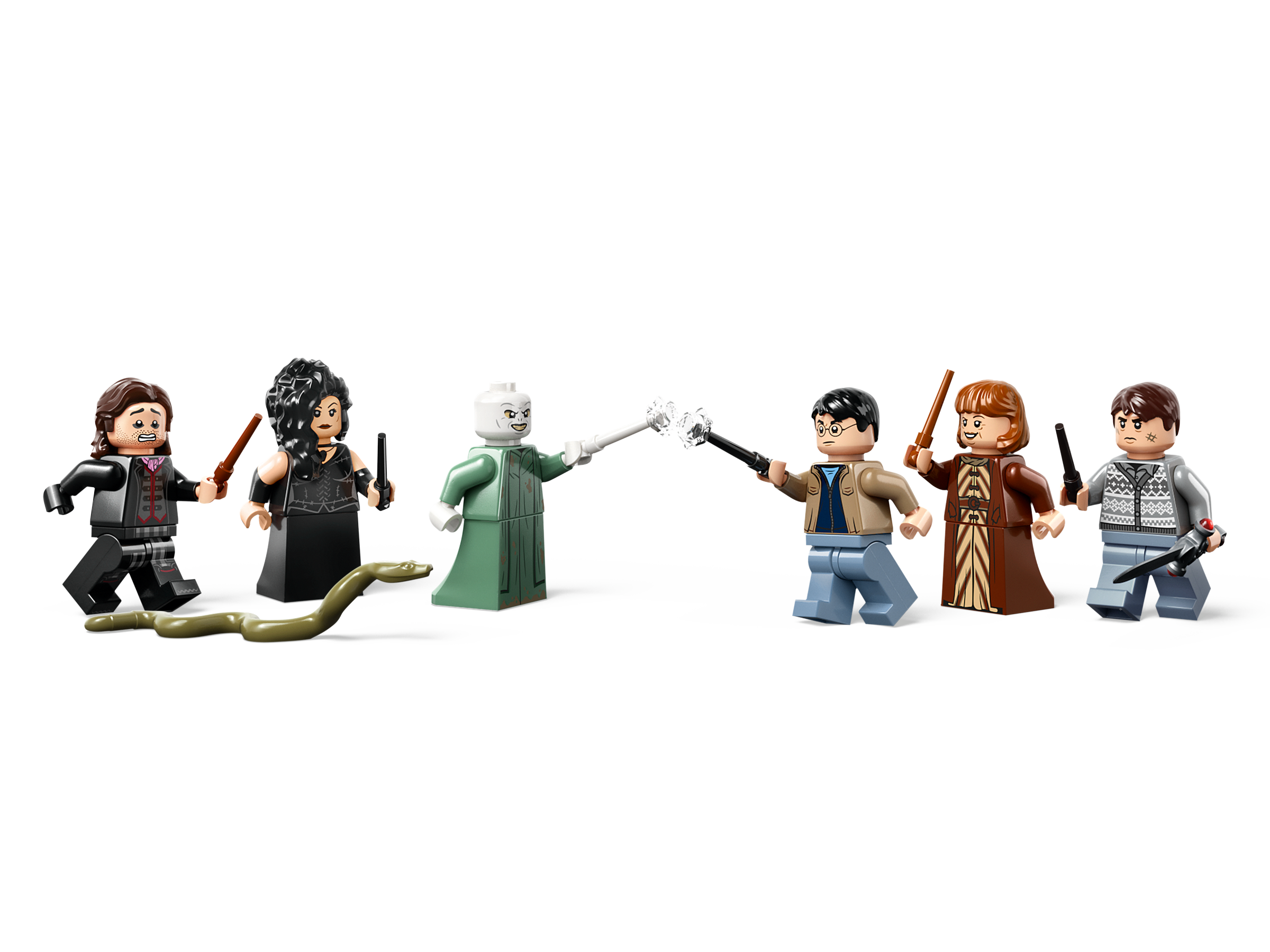 Bring magical stories to life with the 6 LEGO minifigures, plus a Nagini figure. The Harry Potter and Voldemort minifigures each have a wand with attachable LEGO elements to create a ‘spell-casting’ effect, and Neville Longbottom™ has the Sword of Gryffindor™.